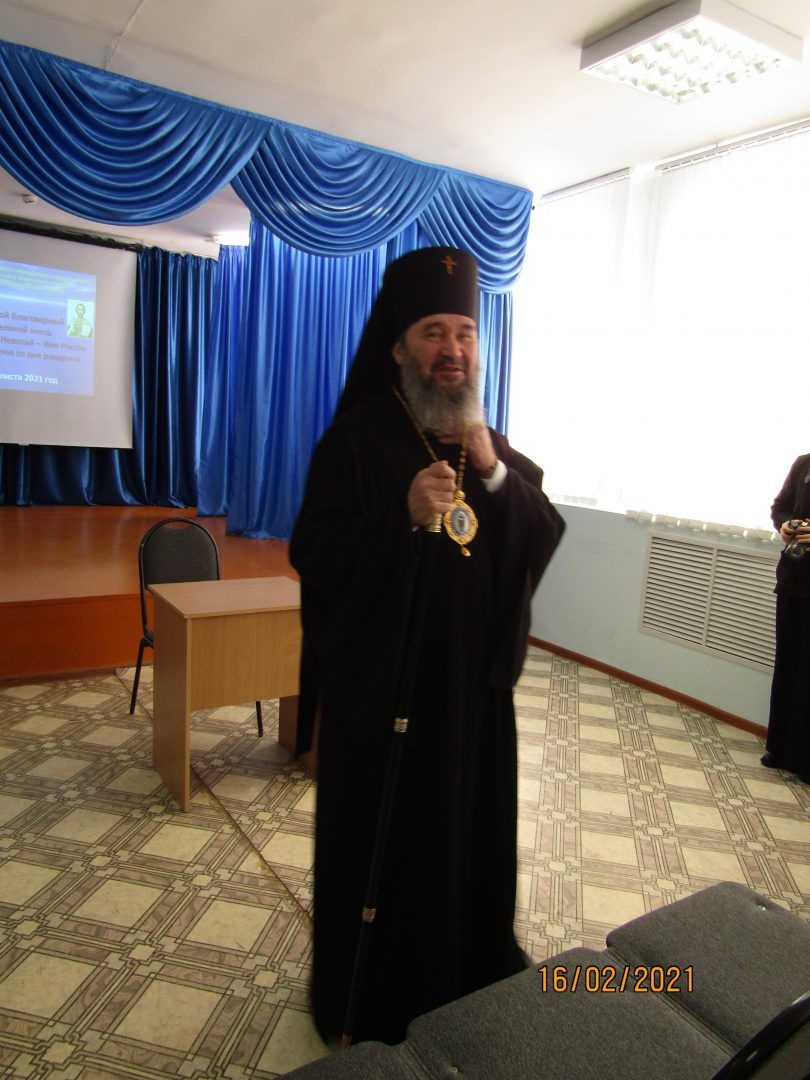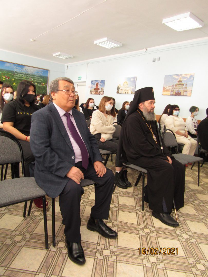 16 февраля 2021 года в КФ МГГЭУ состоялась встреча студентов и преподавателей с Архиепископом Элистинским и Калмыцким Юстинианом. С приветственным словом и поздравлениями в честь юбилея Архиепископа Элистинского и Калмыцкого Юстиниана обратился директор филиала, доктор экономических наук Э.Л. Пашнанов.