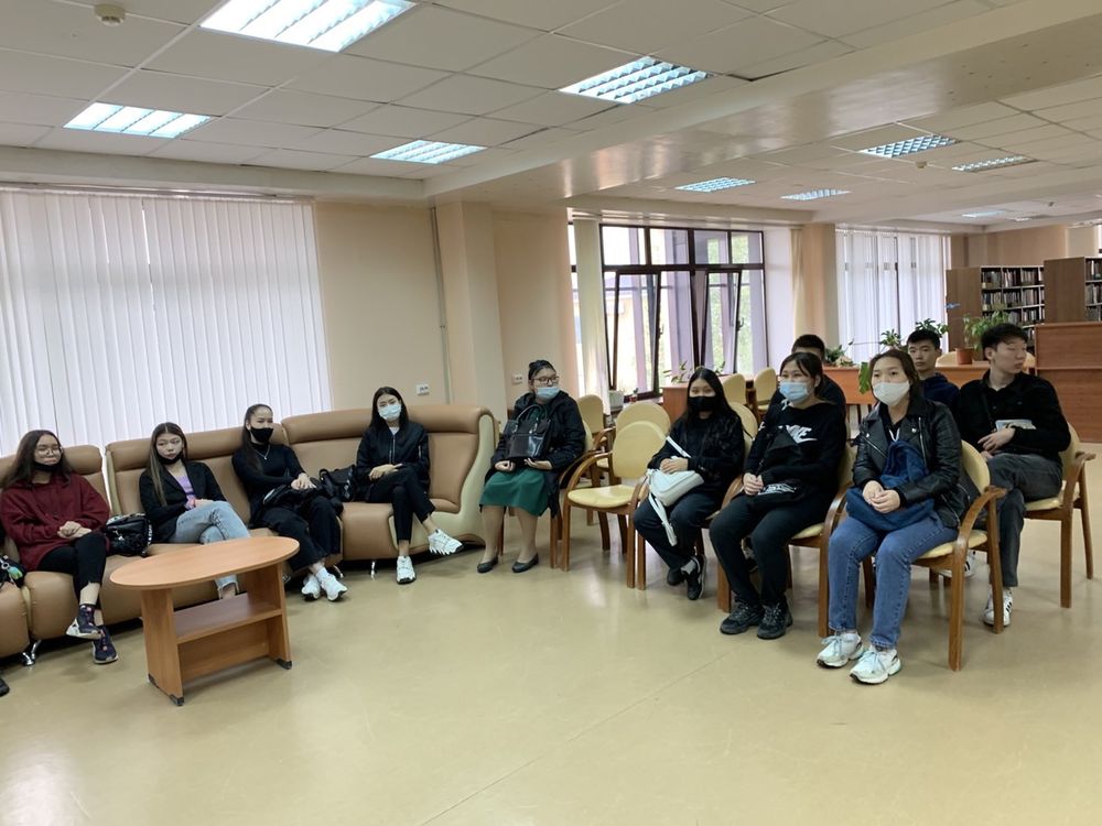 22 сентября 2021 года для студентов специальности Право и организация социального обеспечения в Национальной библиотеке имени Амур Санана проведен библиотечный урок, посвященный книге и чтению литературы. Заведующая отделом читальных залов по гуманитарным наукам Наталья Кравцова предложила ребятам поразмышлять — нужна ли сегодня, в век информационных технологий, книга? В ходе диалога были показаны преимущества чтения, обозначена роль книг в процессе духовного роста человека. Молодые люди пришли к выводу, что работа с книгой учит самостоятельно добывать знания, развивает мышление, ум, кругозор и, пожалуй, не явно, но все же воспитывает.