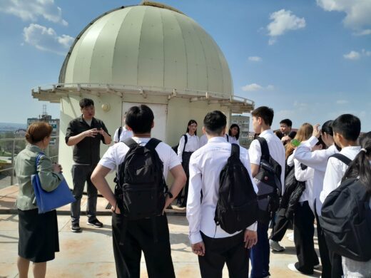 12 апреля 2024 года преподаватели Сангаджиева Л.Б., Очирова Т.Л. в рамках профориентационной работы провели мастер-класс «Космос и мы» для обучающихся 9 класса МБОУ «ЭКГ» на базе молодежной лаборатории Физики Солнца. Во время мероприятия школьники встретились с директором лаборатории Дертеевым С.Б., который во время экскурсии рассказал о проводимых молодыми учеными исследованиях, показал телескоп. Ребята с большим интересом задавали вопросы о Солнце.