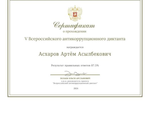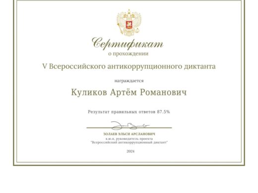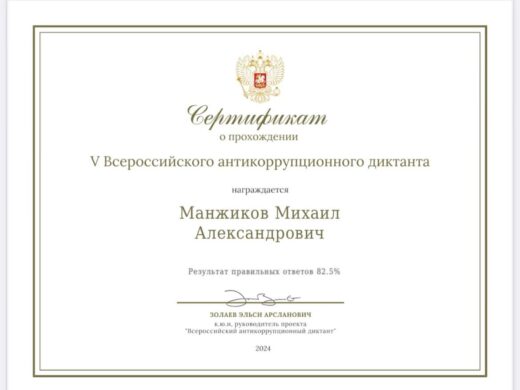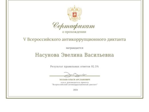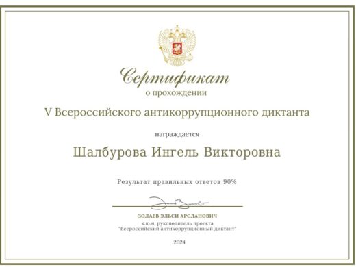 В целях оценки уровня знаний граждан о коррупции и ее последствиях 03-04 декабря 2024 года студенты КФ РГУ СоцТех, в рамках Декады общих гуманитарных и профессиональных дисциплин и модулей, приняли участие во Всероссийском антикоррупционном диктанте. Участники ответили как на общие вопросы, направленные на проверку антикоррупционного законодательства, так и на практические ситуации, позволяющие оценить компетентность участника в сфере противодействия коррупции. Каждый, успешно прошедший диктант, получил именной сертификат.
