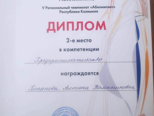 2 место – Басанова А. (компетенция «Предпринимательство», руководитель Тиминова О.В.).
