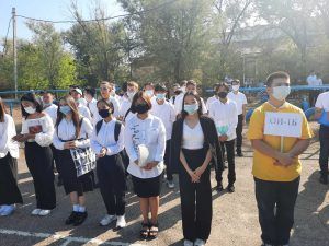 С теплыми пожеланиями к присутствующим обратились заместитель Министра цифрового развития Республики Калмыкия Александр Александрович Кичиков, начальник отдела Министерства спорта и молодежной политики Республики Калмыкия Алексей Станиславович Сельдинов. Почетное право дать первый звонок предоставлено отличникам учебы Киевскому Савелию и Мутляевой Алине.