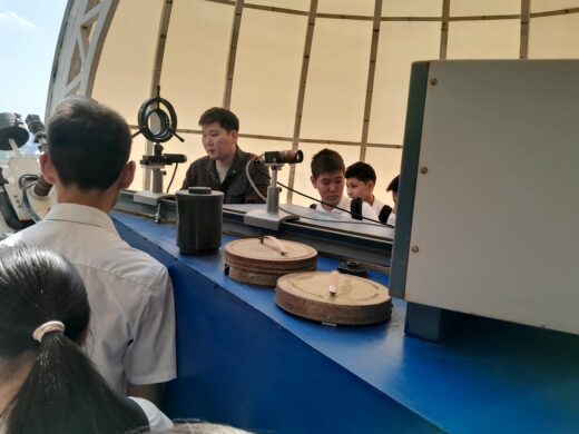 12 апреля 2024 года преподаватели Сангаджиева Л.Б., Очирова Т.Л. в рамках профориентационной работы провели мастер-класс «Космос и мы» для обучающихся 9 класса МБОУ «ЭКГ» на базе молодежной лаборатории Физики Солнца. Во время мероприятия школьники встретились с директором лаборатории Дертеевым С.Б., который во время экскурсии рассказал о проводимых молодыми учеными исследованиях, показал телескоп. Ребята с большим интересом задавали вопросы о Солнце.