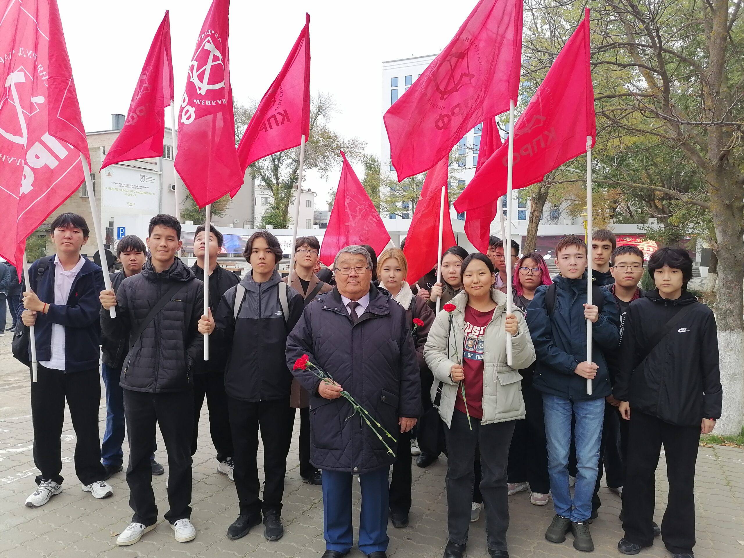 7 ноября 2025 года студенты КФ РГУ СоцТех – активисты историко-патриотического клуба «Глобус» вместе с директором филиала Пашнановым Э.Л. приняли участие в торжественном мероприятии, посвященном 108-й годовщине Великой Октябрьской революции. Молодые люди провели церемонию возложения цветов к памятникам, олицетворяющим ключевые вехи истории нашей страны, отдав дань уважения Владимиру Ильичу Ленину, основателю Советского государства, Басану Бадьминовичу Городовикову, Герою Советского Союза и первому секретарю Калмыцкого обкома КПСС, почтили минутой молчания воинов, павших на полях сражений, у Мемориала героев Гражданской и Великой Отечественной войн. Это мероприятие стало для студентов важным событием, позволившим не только почтить историческую память, но и задуматься о сложных и переломных моментах в судьбе Отечества. Участие в таких акциях способствует воспитанию гражданской ответственности и патриотизма среди молодежи.