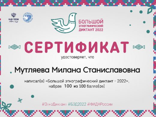 В целях оценки уровня этнографической грамотности 04 ноября 2022 года в рамках Дня народного единства, студенты и преподаватели КФ МГГЭУ приняли участие в VII Международной просветительской акции «Большой этнографический диктант» в онлайн-формате. Участие в Диктанте, который знакомит с культурой народов России, позволило каждому участнику оценить общий уровень этнографической грамотности.