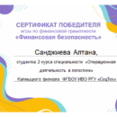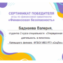 По итогам игры, лучшие знатоки финансовой безопасности получили сертификаты участников данного мероприятия.