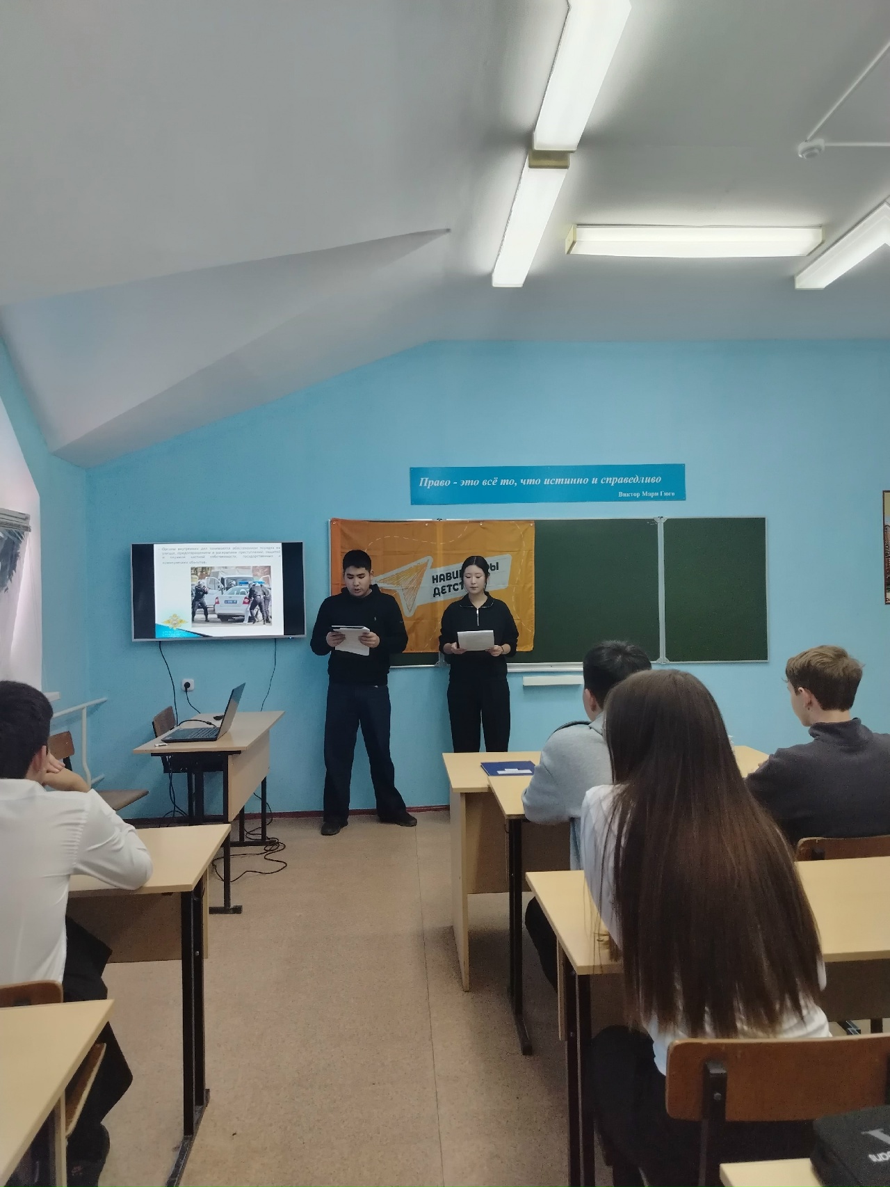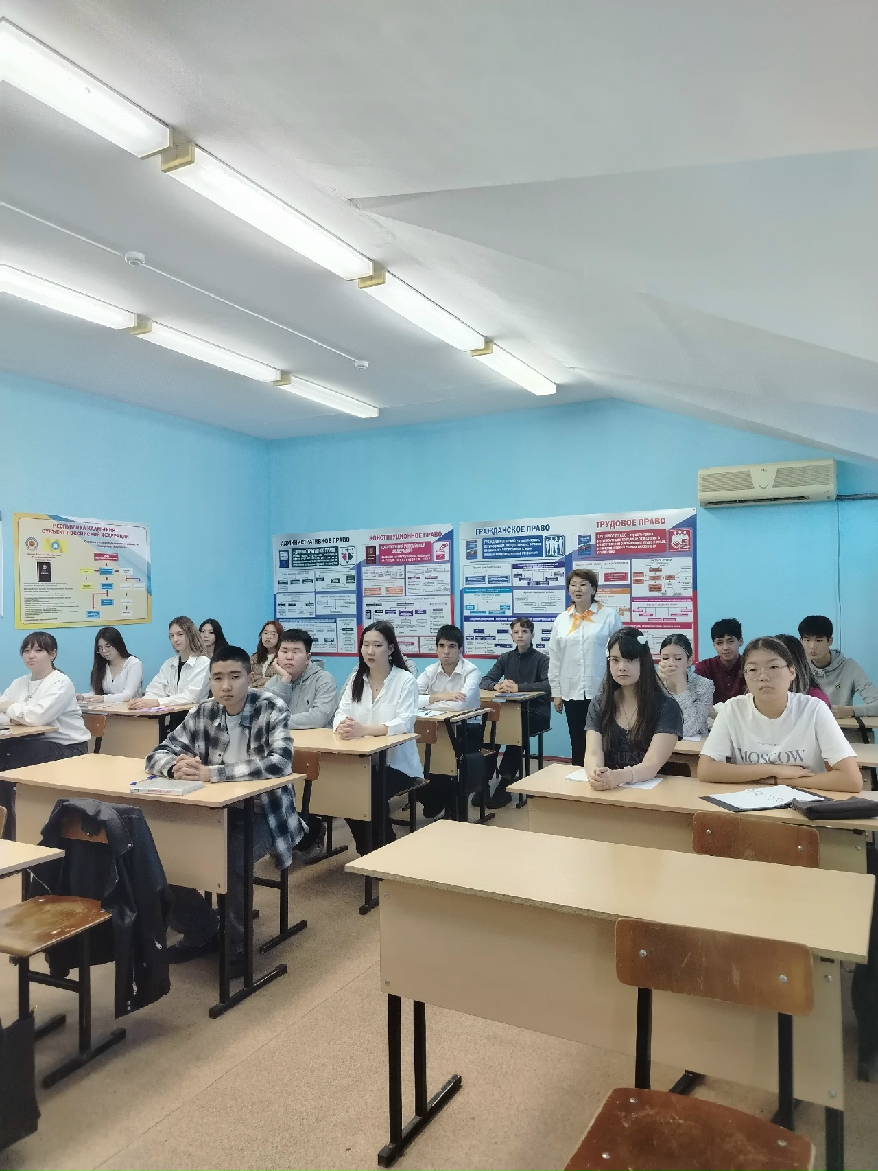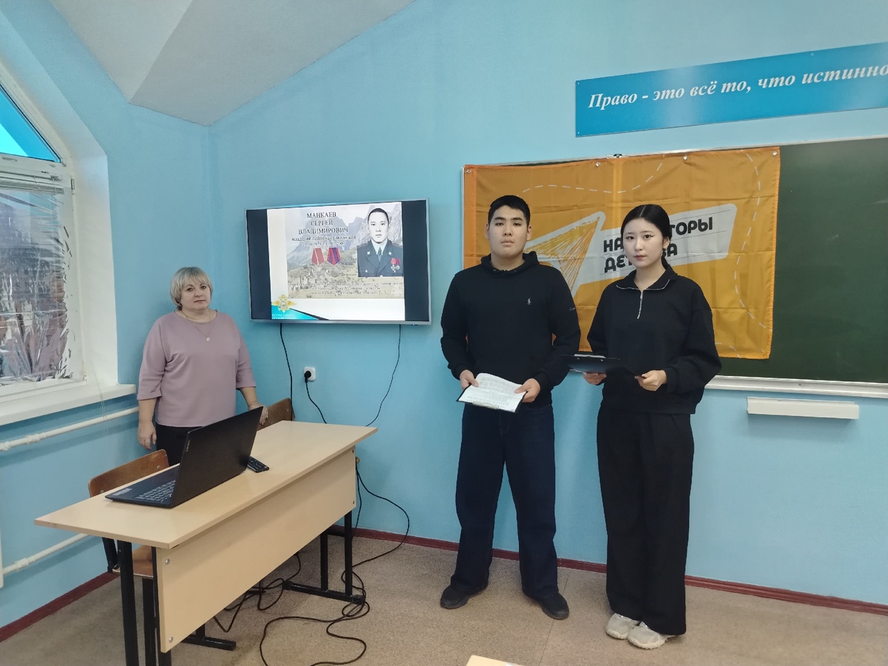 В целях воспитания гражданственности и патриотизма 07 ноября 2025 года студенты 1 курса специальности «Юриспруденция» (кл. рук. Будыльская Н.В.) организовали и провели час мужества, посвященный Дню памяти погибших при исполнении служебных обязанностей сотрудников ОВД. Молодые люди рассказали о героях правоохранительных органов — наших земляках, которые ценой собственной жизни обеспечивали безопасностьграждан Республики Калмыкия в мирное время. В завершении мероприятия прошла Минута молчания.