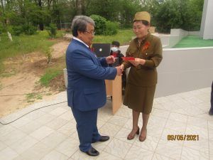 Почетные гости — представители Калмыцкого регионального отделения политической партии «Коммунистическая партия Российской Федерации» — вручили Эрдне Лиджиевичу Юбилейную медаль «75 лет Победы в Великой Отечественной войне 1941-1945 гг.» за вклад в формирование гражданско-патриотического воспитания молодого поколения.