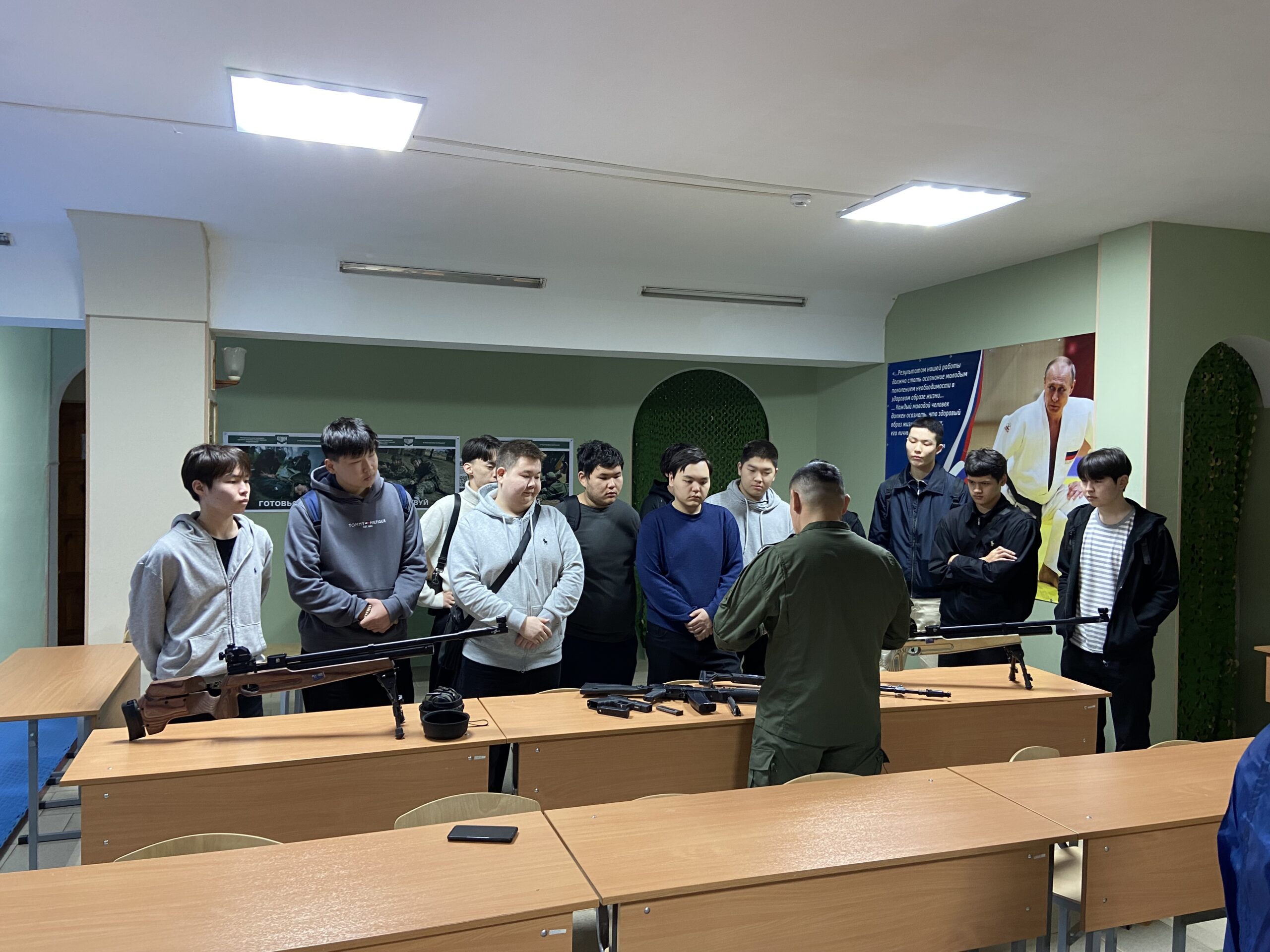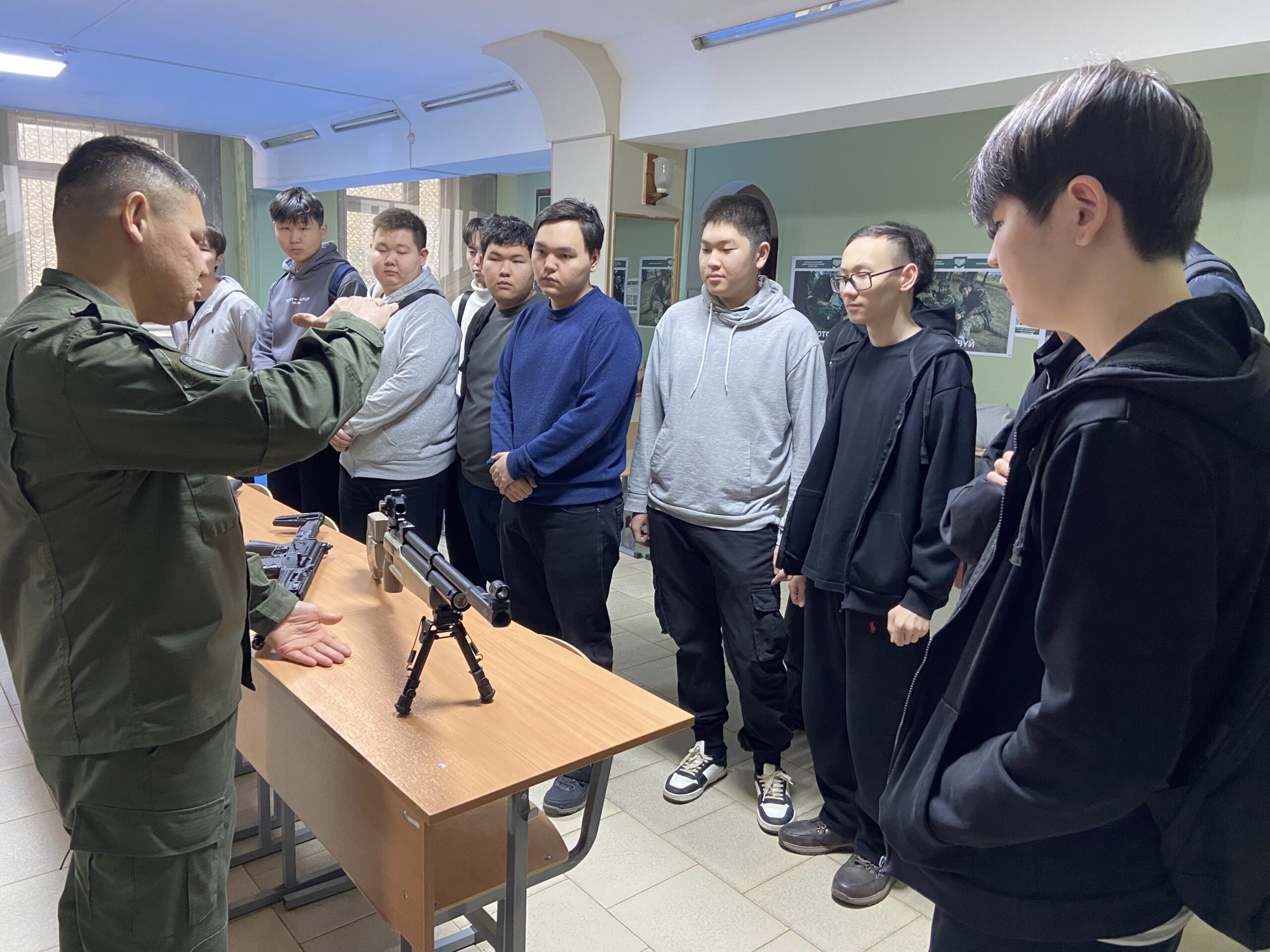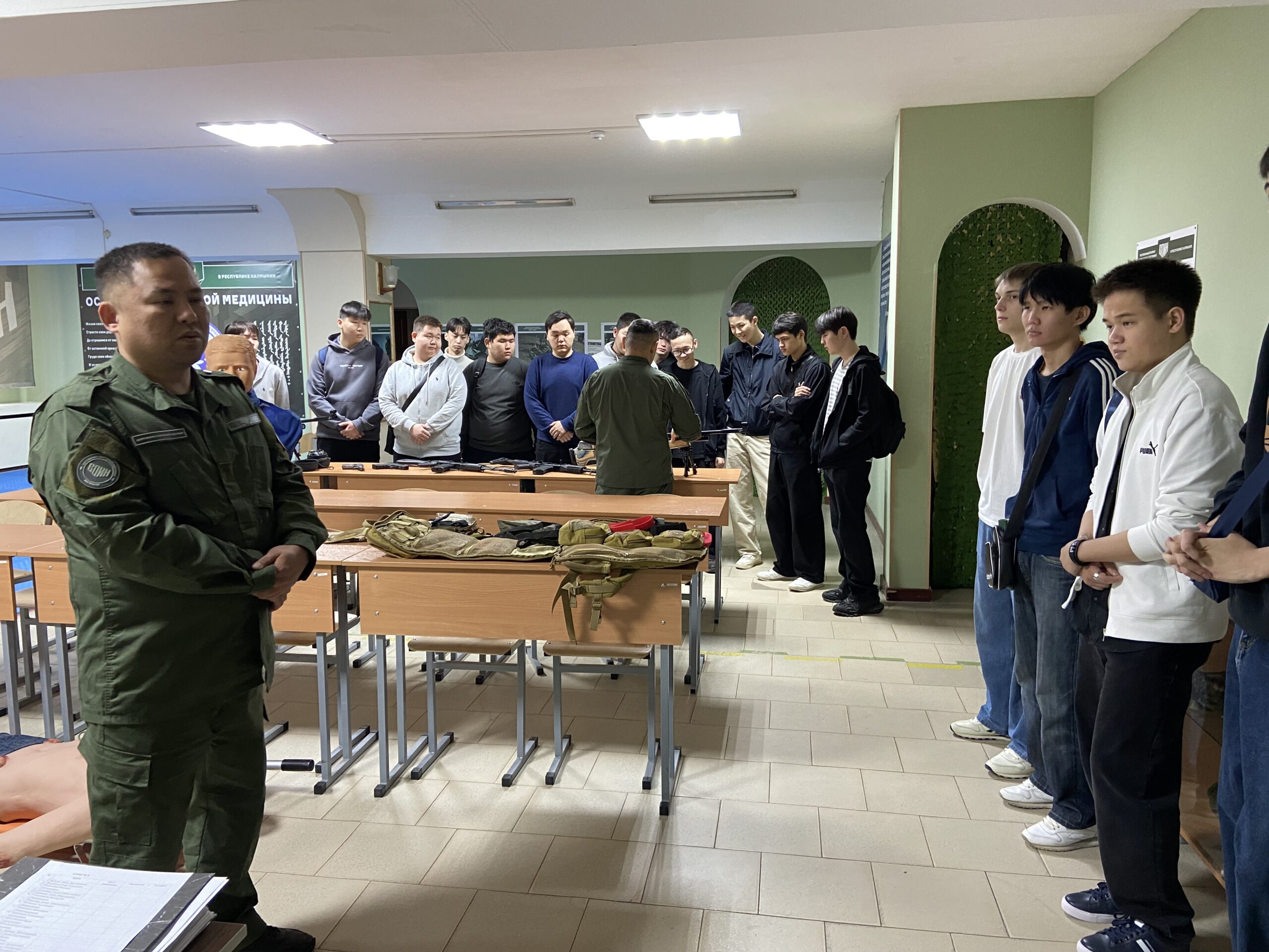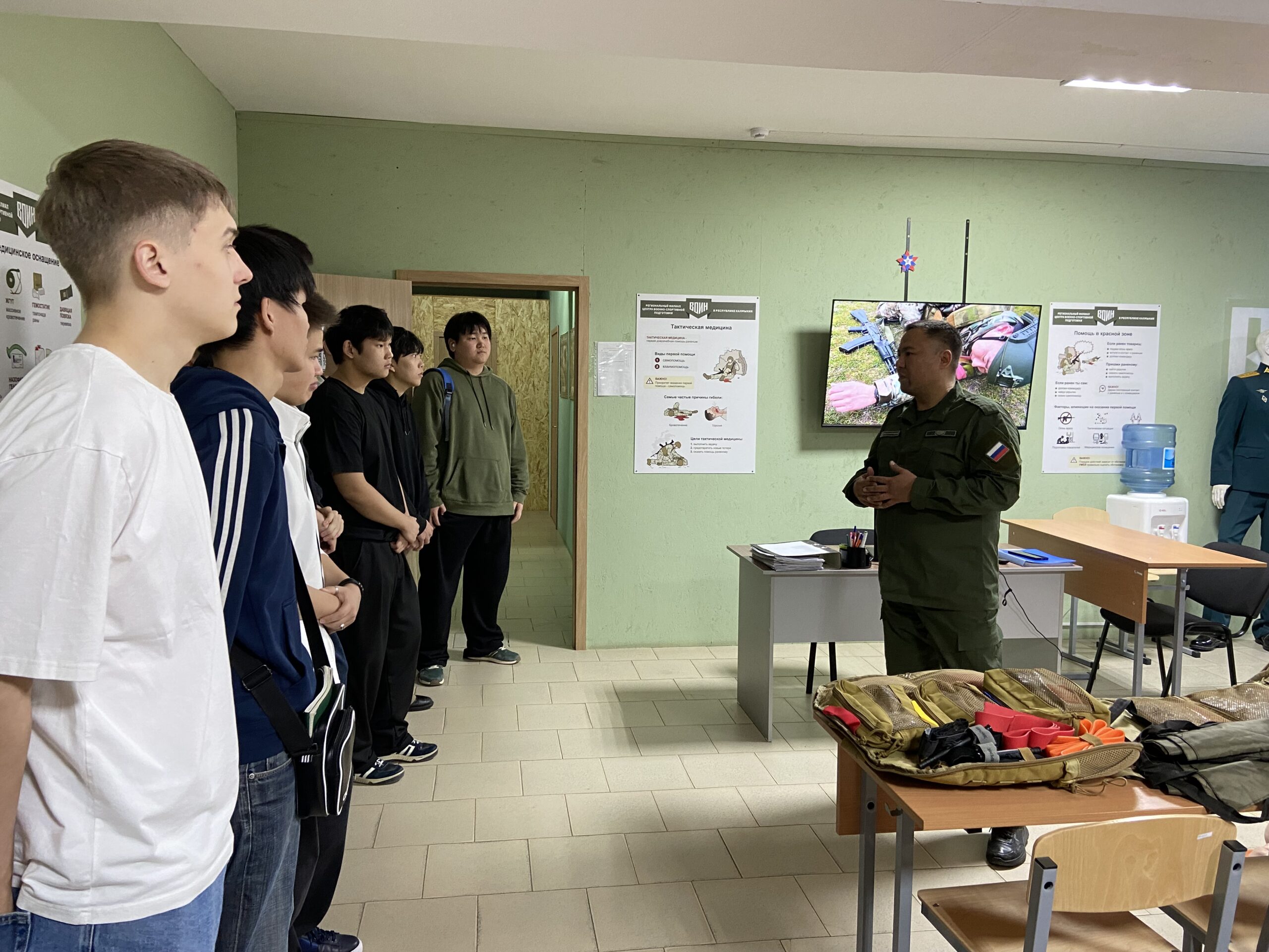 12 марта 2026 года в рамках военно-патриотического воспитания и социального сотрудничества студенты 3 года обучения КФ РГУ СоцТех встретились с профессиональными инструкторами филиала Центра военно-спортивной подготовки и патриотического воспитания молодежи «Воин» Республики Калмыкия. Юноши узнали о задачах и проектах регионального Центра, посмотрели выставку образцов вооружения, современную военную экипировку, оборудование и технику для обучения курсантов военно-прикладным навыкам, таким как управление БПЛА, огневая, тактическая и инженерная подготовка, оказание первой помощи и т.д. На примерах бойцов специальной военной операции молодые люди узнали, что любовь к Родине проявляется прежде всего в поступках, а стойкость, человечность и сила духа помогают преодолевать трудности.