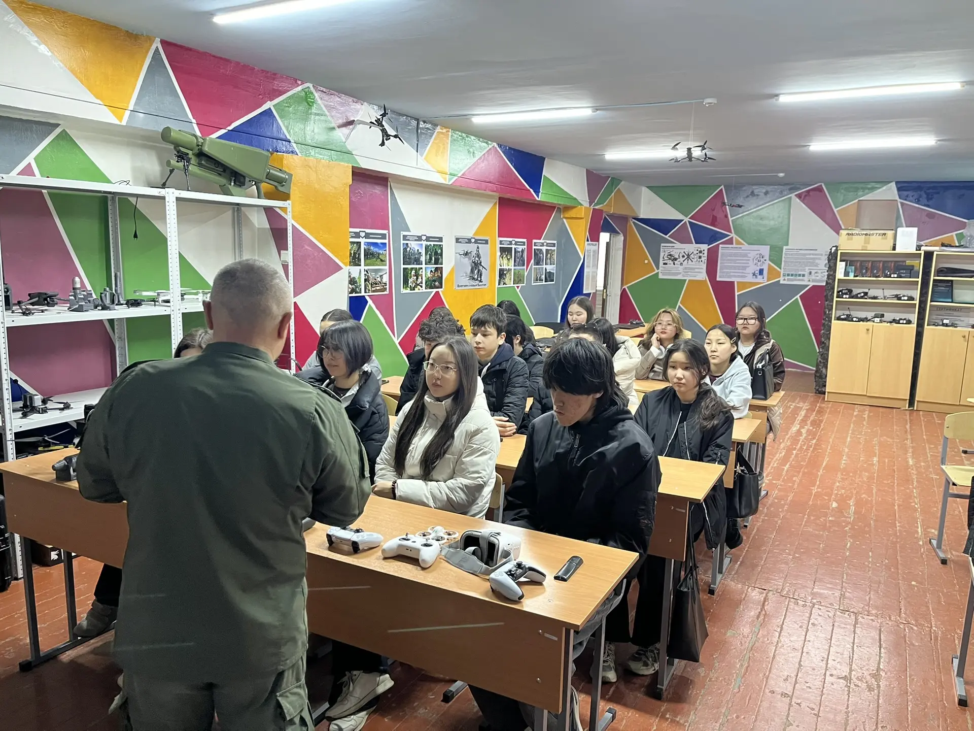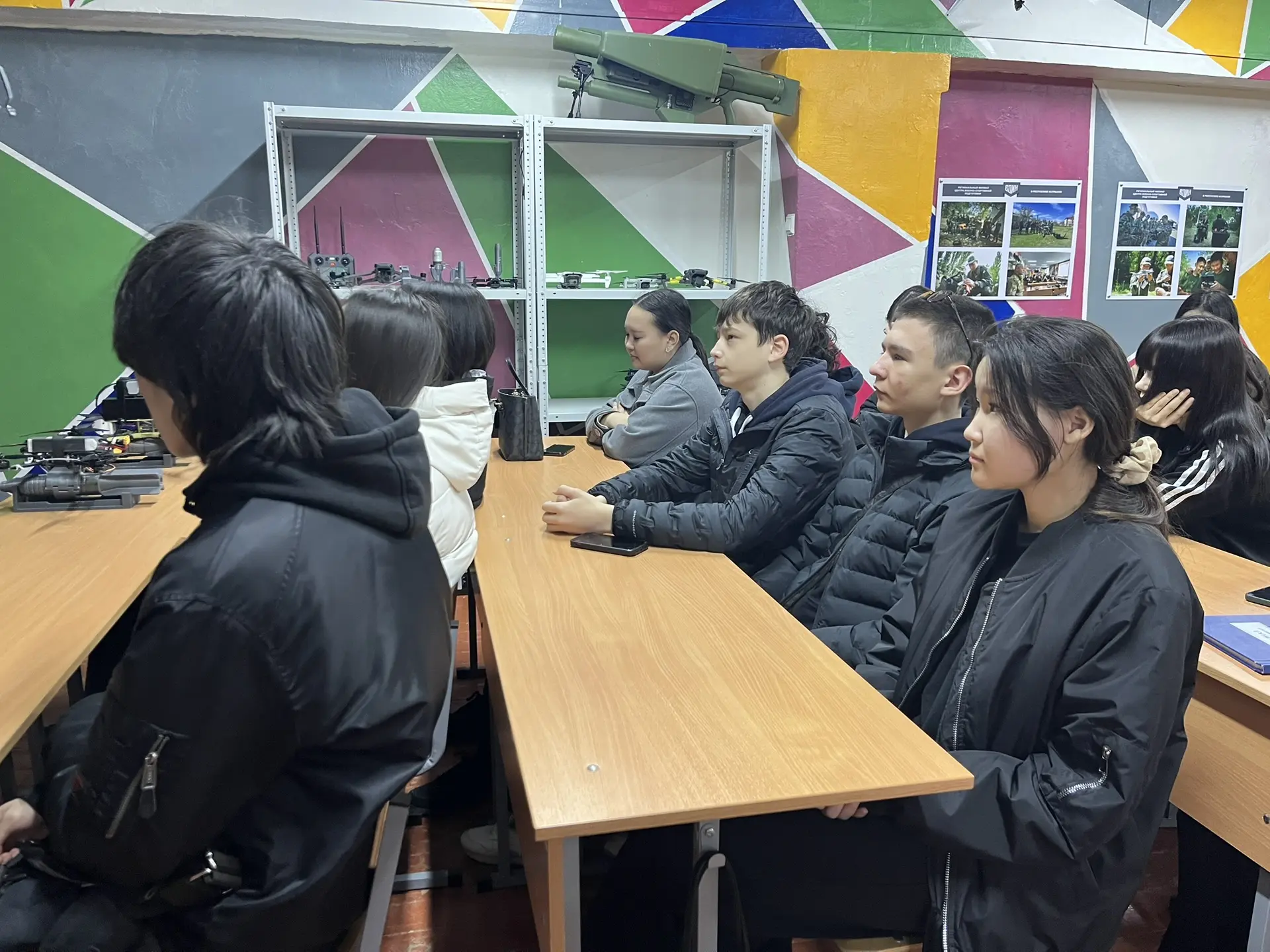 08 апреля 2026 года в рамках военно-патриотического воспитания и социального сотрудничества студенты 1 года обучения КФ РГУ СоцТех под руководством преподавателя Худаева О.П. встретились с профессиональными инструкторами филиала Центра военно-спортивной подготовки и патриотического воспитания молодежи «Воин» Республики Калмыкия. Ребята узнали о работе регионального Центра, посмотрели выставку образцов вооружения, современную военную экипировку, оборудование и технику для обучения курсантов военно-прикладным навыкам, таким как управление БПЛА, огневая, тактическая и инженерная подготовка, оказание первой помощи и т.д. На примерах бойцов специальной военной операции молодые люди убедились, что любовь к Родине проявляется прежде всего в поступках, а стойкость, человечность и сила духа помогают преодолевать трудности.