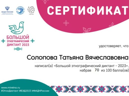 3 ноября 2023 года студенты КФ МГГЭУ — активисты историко-патриотического клуба «Глобус» приняли участие в Международной акции «Большой этнографический диктант» на площадке Национальной библиотеки им. А.М. Амур-Санана РК. Это ежегодная всероссийская просветительская акция, которая знакомит с культурой народов, проживающих в нашей стране, а также позволяет оценить общий уровень этнокультурной грамотности. Организатор акции – Федеральное агентство по делам национальностей.