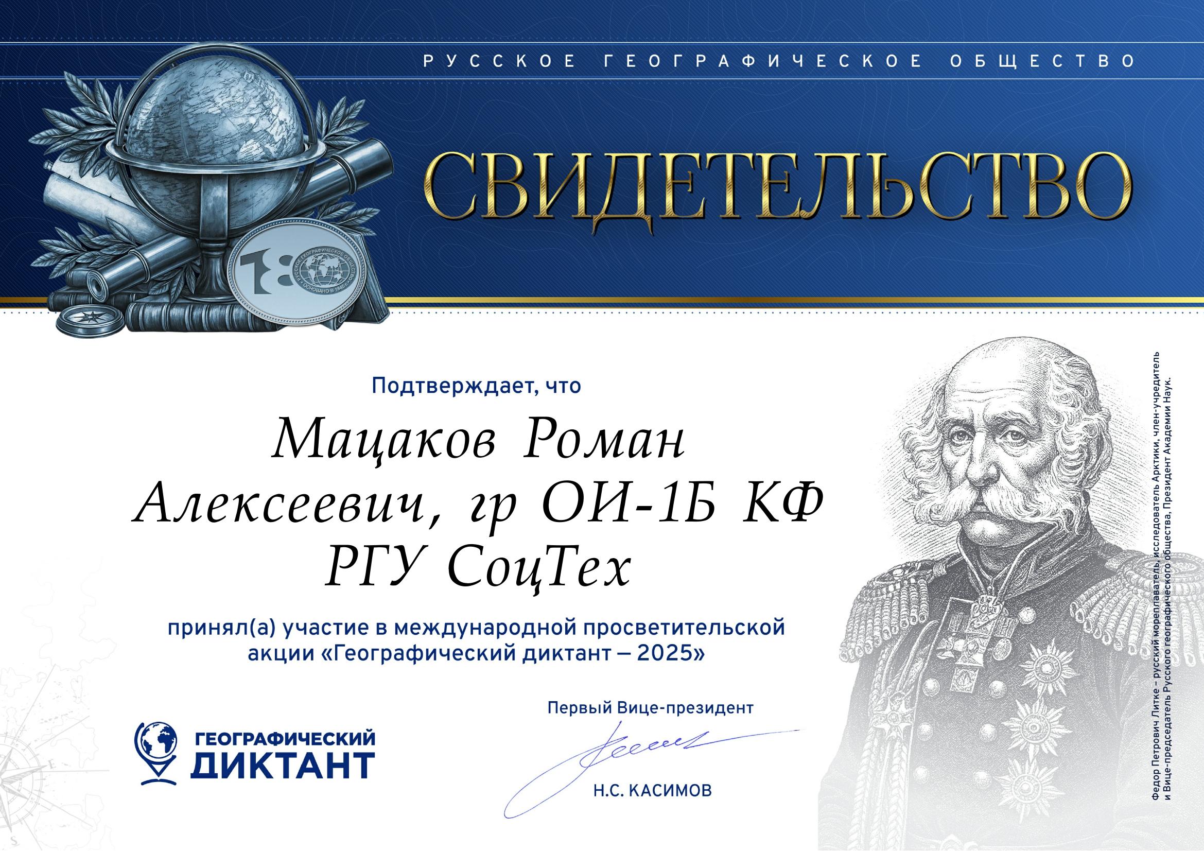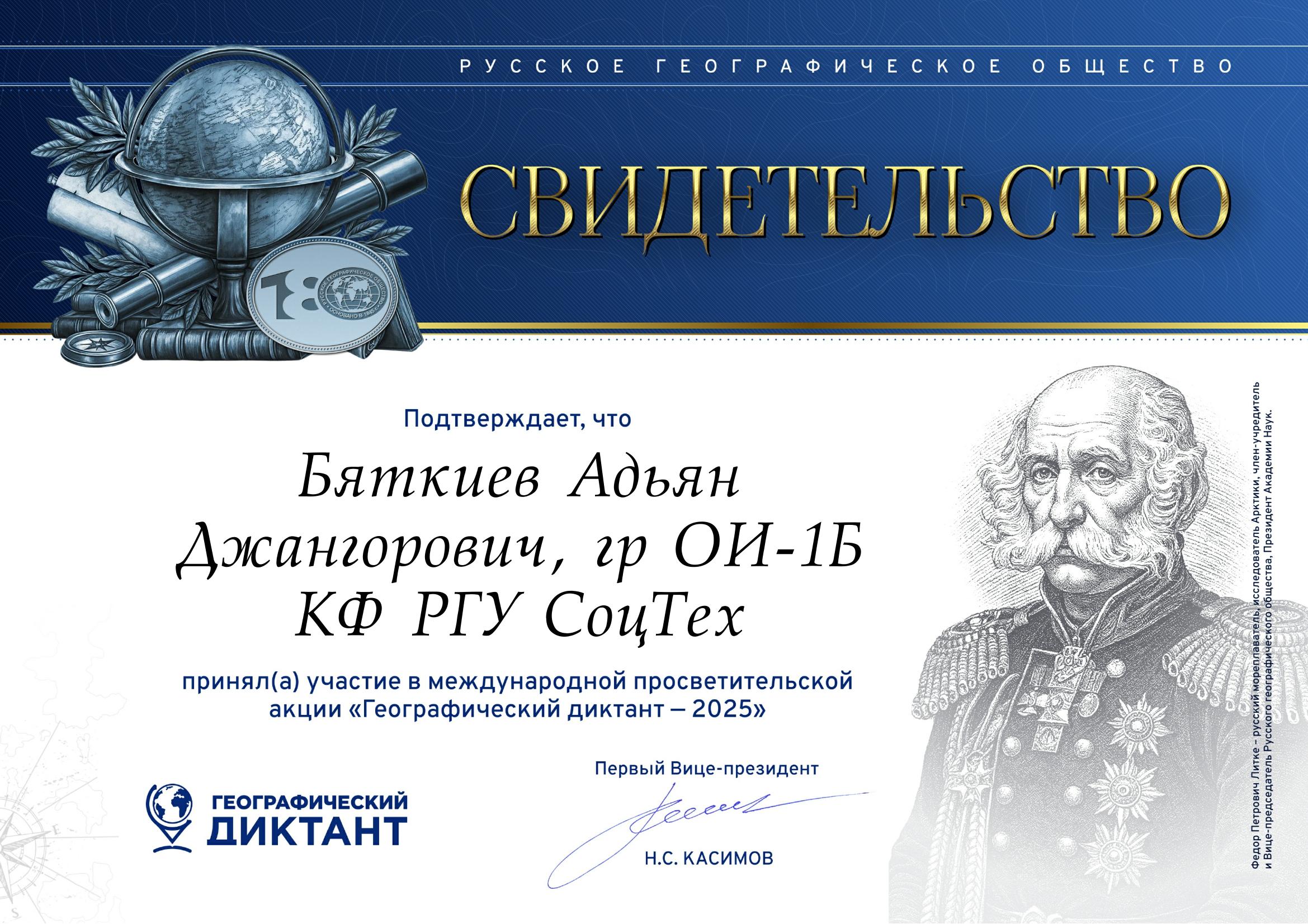 В целях популяризация географических знаний, а также повышения интереса к науке и национальному наследию 02 декабря 2025 года студенты 1 курса специальности «Юриспруденция» и «Обеспечение информационной безопасности автоматизированных систем» приняли участие в Международной просветительской акции Русского географического общества «Географический диктант – 2025». Тематика Диктанта отражала ключевые события и юбилеи 2025 года: 180-летие Русского географического общества, 80-летие Победы в Великой Отечественной войне, 500-летие освоения Северного морского пути, а также раскрывала историко-культурные и географические взаимосвязи России со странами БРИКС. Участие в диктанте было не только полезным, но и увлекательным, так как студенты могли проверить свои знания и узнать много нового о мире вокруг них.