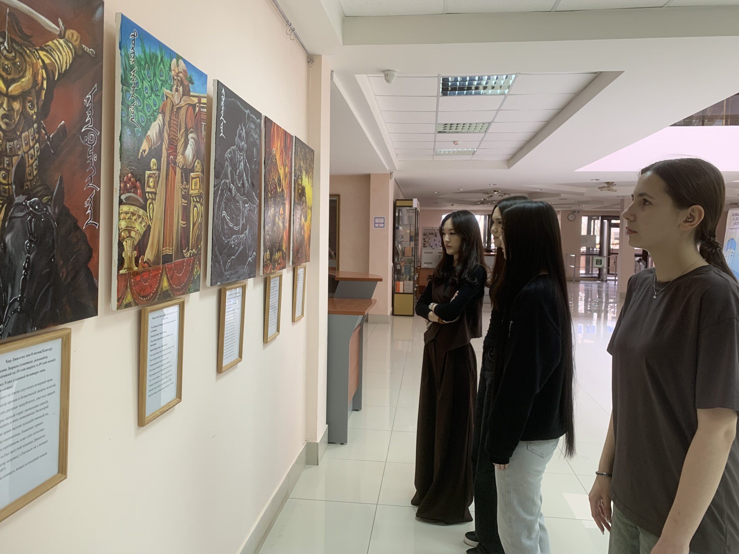 11 апреля 2026 года студенты специальности Юриспруденция (кл. рук. Басангова Г.В., Басанова Д.В., Будыльская Н.В.) посетили персональную выставку художника Дениса Дорджиева «Волшебная страна Бумба» в Национальной библиотеке им. А.М. Амур-Санана. Молодые люди увидели полотна автора, посвященные героям великого калмыцкого эпоса «Джангар», в которых изображены богатыри и воплощены дух страны Бумба, сила, честь и мудрость народа. Экспозиция творческих работ объединяет прошлое и настоящее, напоминая о корнях и ценностях, которые связывают все народы нашей большой страны.