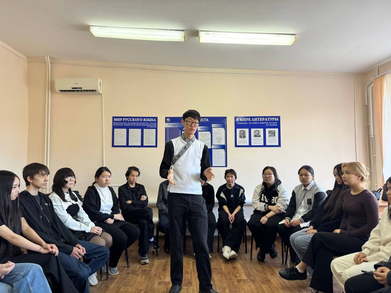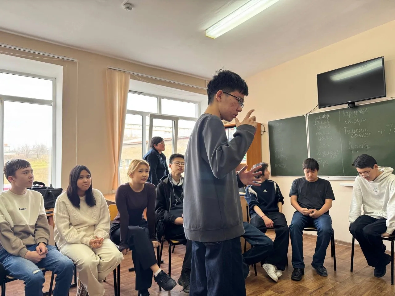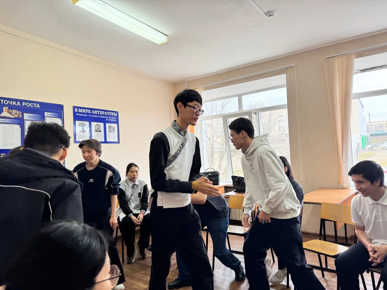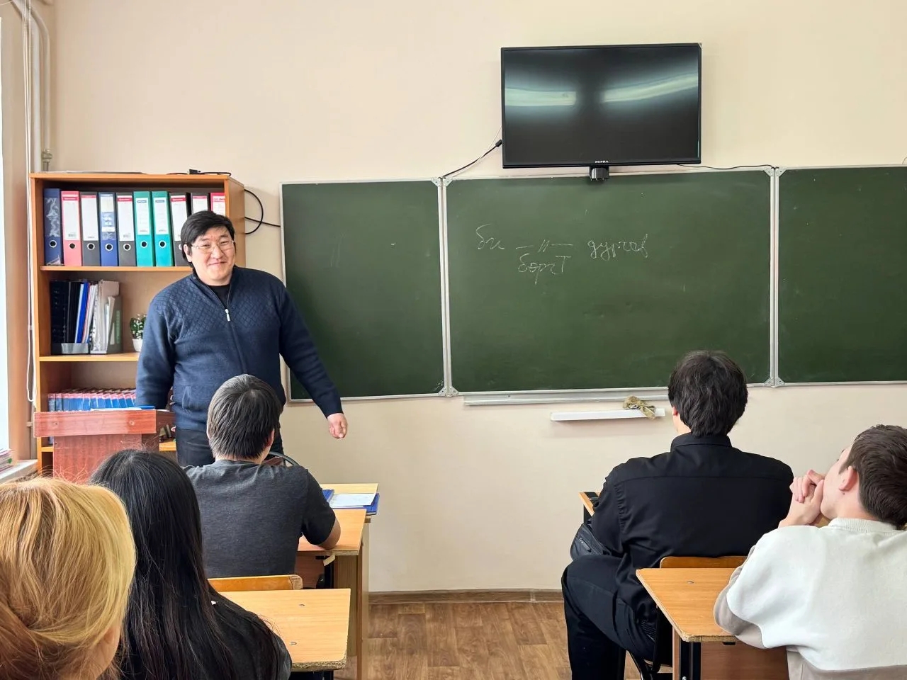 20 февраля 2026 года в КФ РГУ СоцТех в рамках мероприятий, посвящённых Международному дню родного языка, преподаватели Ашаева А.С., Санджиева А.Э. организовали встречу студентов первого года обучения с специалистом Центра развития калмыцкого языка Манджиевым С.С. и активистами клуба «НОМ», студентами 3 курса КалмГУ имени Б.Б. Городовикова. В ходе оживлённой, непринуждённой беседы участники встречи обсудили проблемы общения современной молодёжи на родном языке. Студенты приняли активное участие в интерактивной игре «Бостн!», пополнив свои знания по родному языку.
