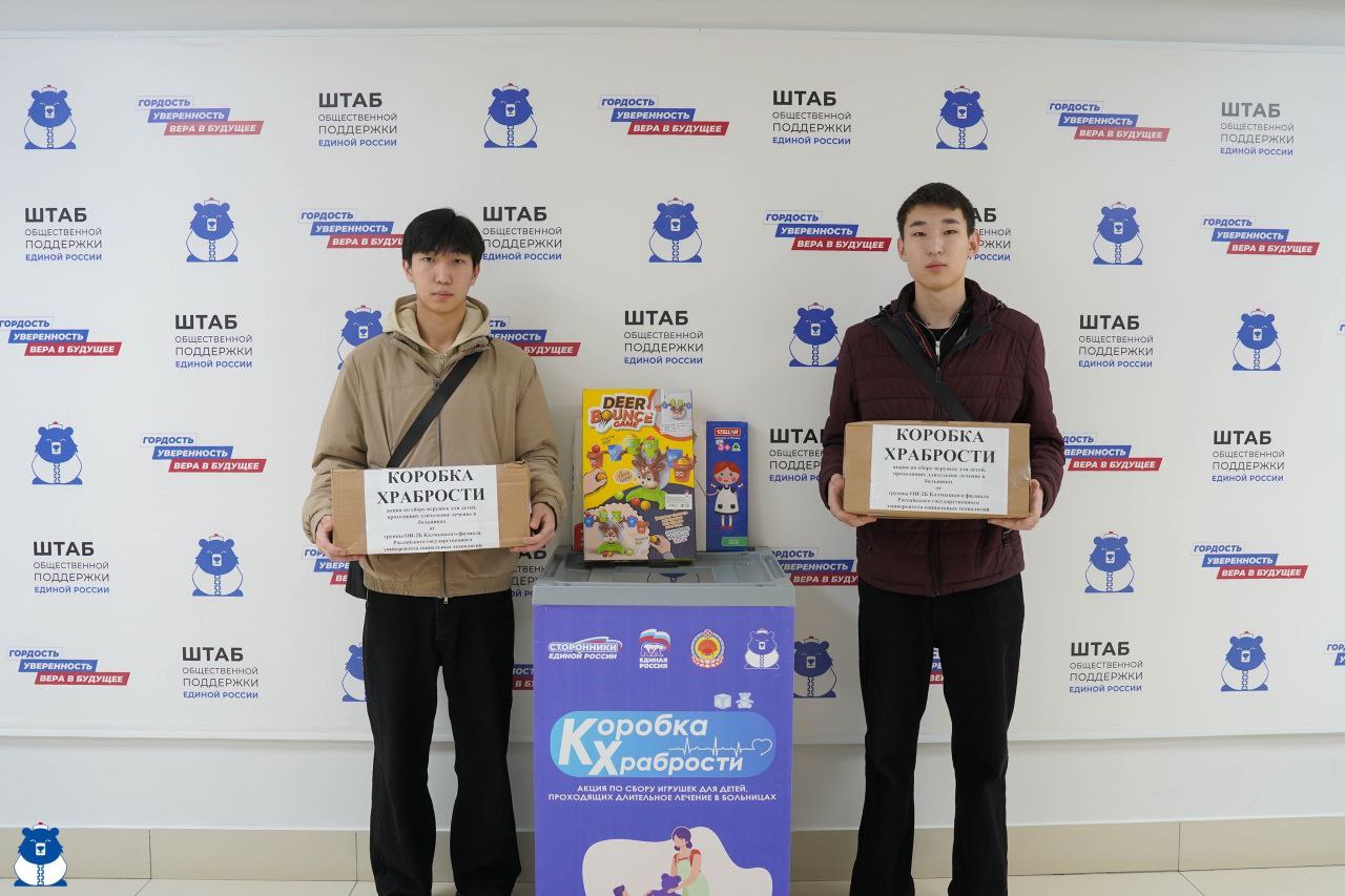 27 ноября студенты КФ РГУ СоцТех приняли участие в благотворительной акции «Коробка храбрости» по сбору игрушек для детей, проходящих лечение в больницах, проводимого Штабом общественной поддержки партии «Единая Россия».