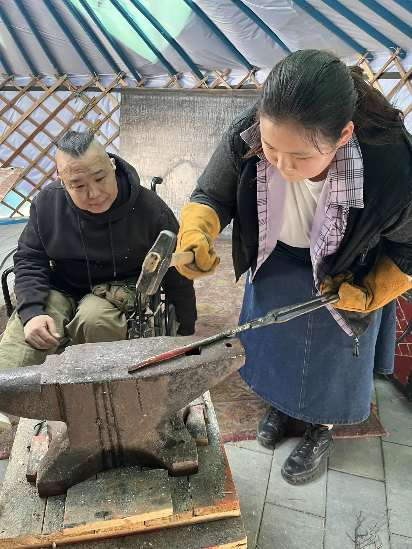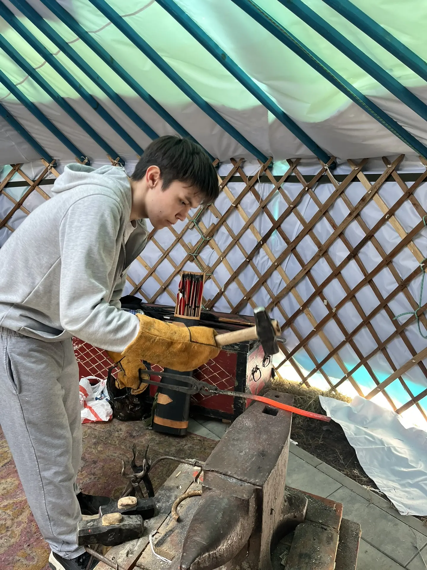 19 марта 2026 года студенты КФ РГУ СоцТех — активисты историко-патриотического клуба «Глобус» вместе с преподавателем О.П. Худаевым — выбрались из учебных аудиторий в настоящую историю! Вместе с ветераном СВО Эрдни Владимировичем Очир-Араевым они отправились в военно-исторический центр «Тенгри». Сначала была теория: разобрали по деталям устройство калмыцкой кибитки — как она строилась, почему имела такую форму и что означали её элементы. Но главное ждало впереди! Ребята встали к наковальне. Эрдни Владимирович показал, как молот слушается настоящего мастера. Студенты попробовали себя в роли подмастерьев кузнеца: учились работать кувалдой и фасонными молотками, постигая азы ковки металла. В такие моменты понимаешь: история — это не только пыльные страницы, это тяжелый, но красивый труд наших предков.