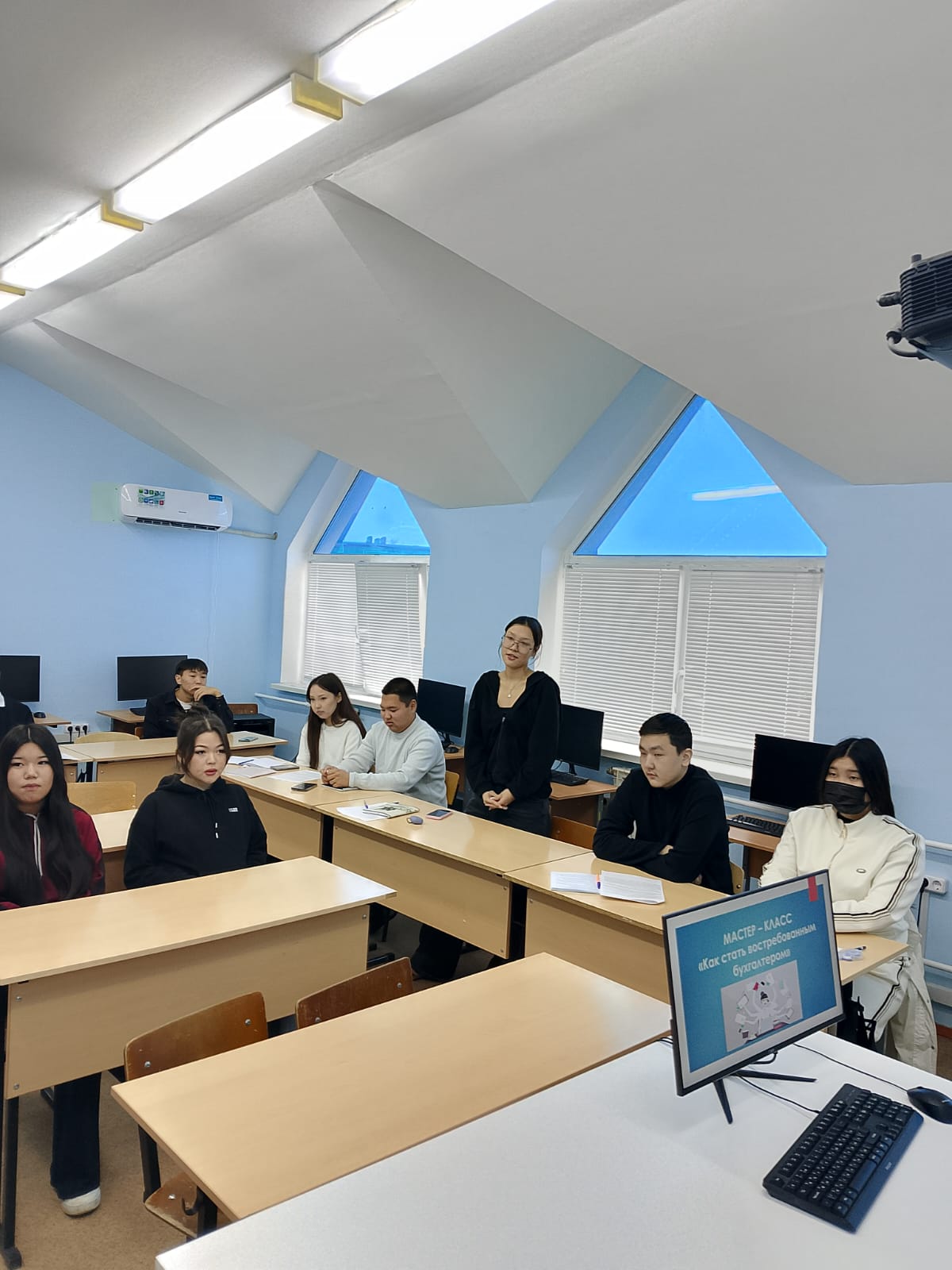 18 ноября 2025 года в КФ РГУ СоцТех состоялся мастер класс «Как стать востребованным бухгалтером» для студентов специальности 38.02.01 Экономика и бухгалтерский учет (по отраслям). Модератором мероприятия выступила Отырова Д.В., главный бухгалтер ООО «Элистаокна», которая поделилась своими профессиональными навыками, ценными советами по поиску стажировок и практик, а также как максимально эффективно использовать этот опыт для последующего трудоустройства.