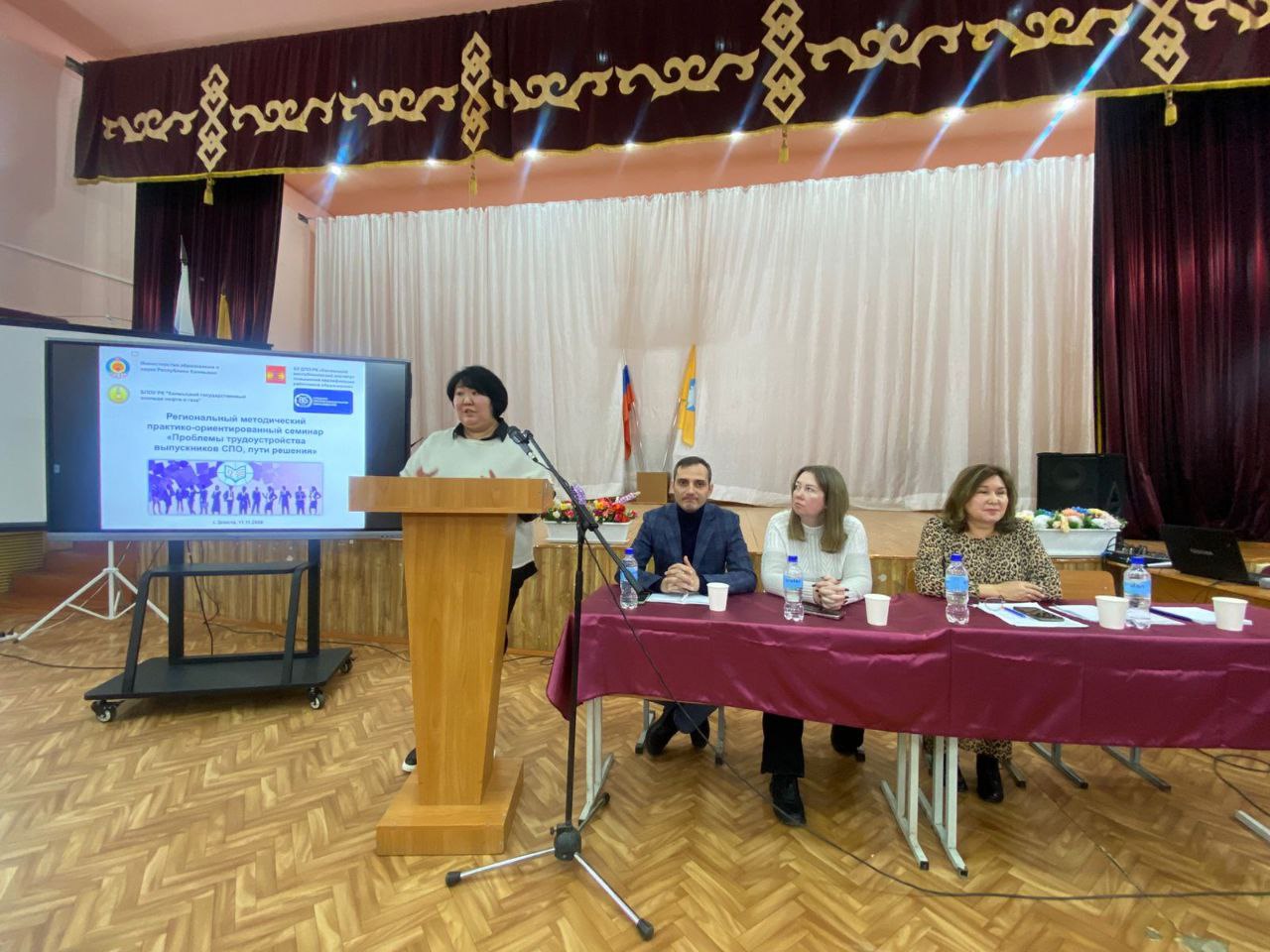 БПОУ РК «Калмыцкий государственный колледж нефти и газа». Мероприятие собрало представителей профессиональных образовательных организаций региона для обсуждения актуальных вопросов содействия занятости выпускников. От Калмыцкого филиала РГУ СоцТех в работе семинара приняла участие заместитель директора по УМР Бамбушева Н.С., которая выступила с докладом «Система управления трудоустройством выпускников СПО: от мониторинга к эффективному партнерству с работодателями».