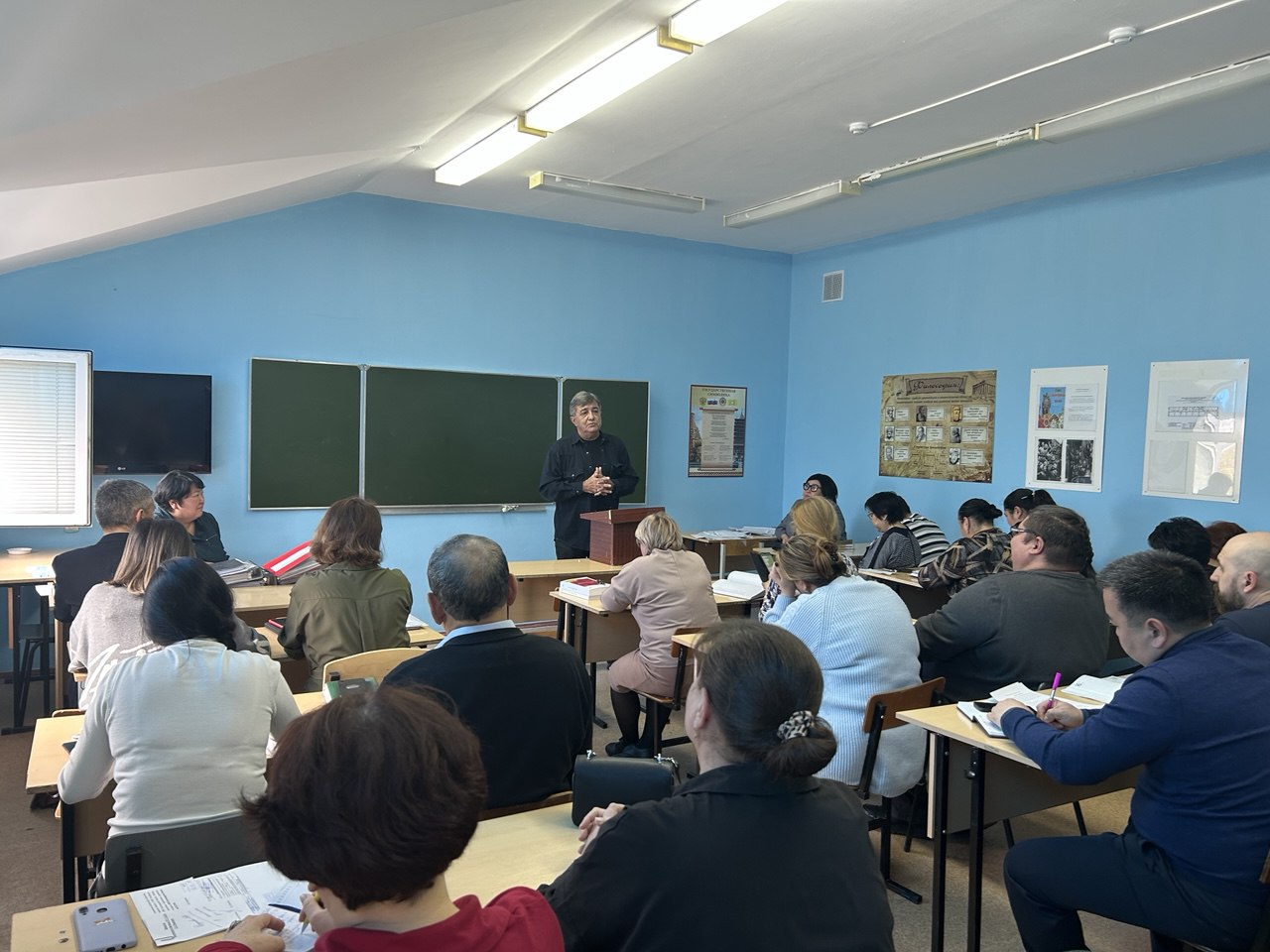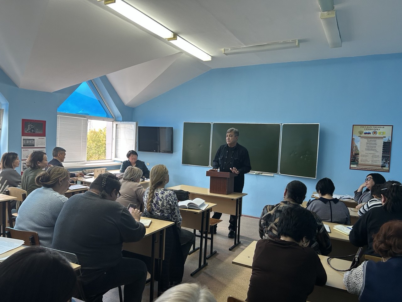 23 октября 2025 года в КФ РГУ СоцТех состоялось заседание методического совета, которое включало специальное образовательное мероприятие для преподавателей. Директор Республиканского Русского театра драмы и комедии Виктор Хаптаханов провел для педагогов филиала мастер-класс по риторике и ораторскому искусству.