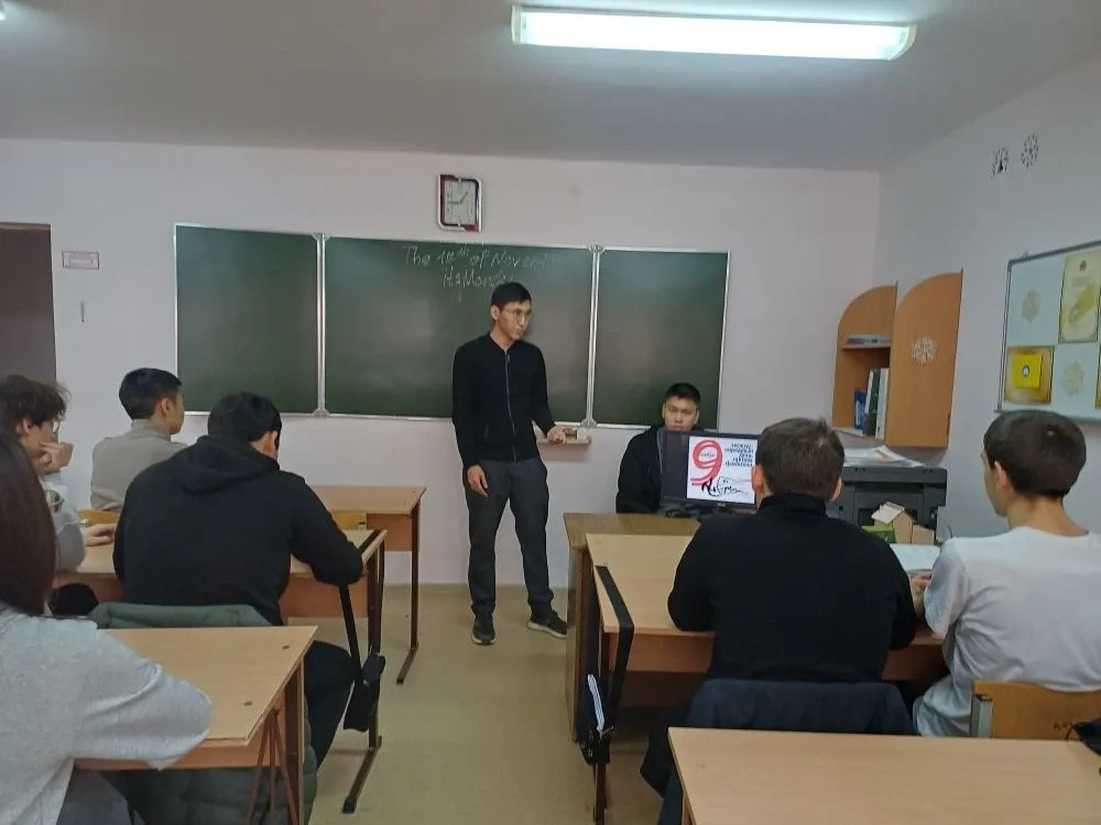 17 ноября 2025 года студенты группы ОИ-4А Адьян Годжуров и Артем Нормаев провели классный час для первокурсников в рамках программы наставничества «студент — студент». Мероприятие было посвящено Международному дню борьбы против фашизма, расизма и антисемитизма.