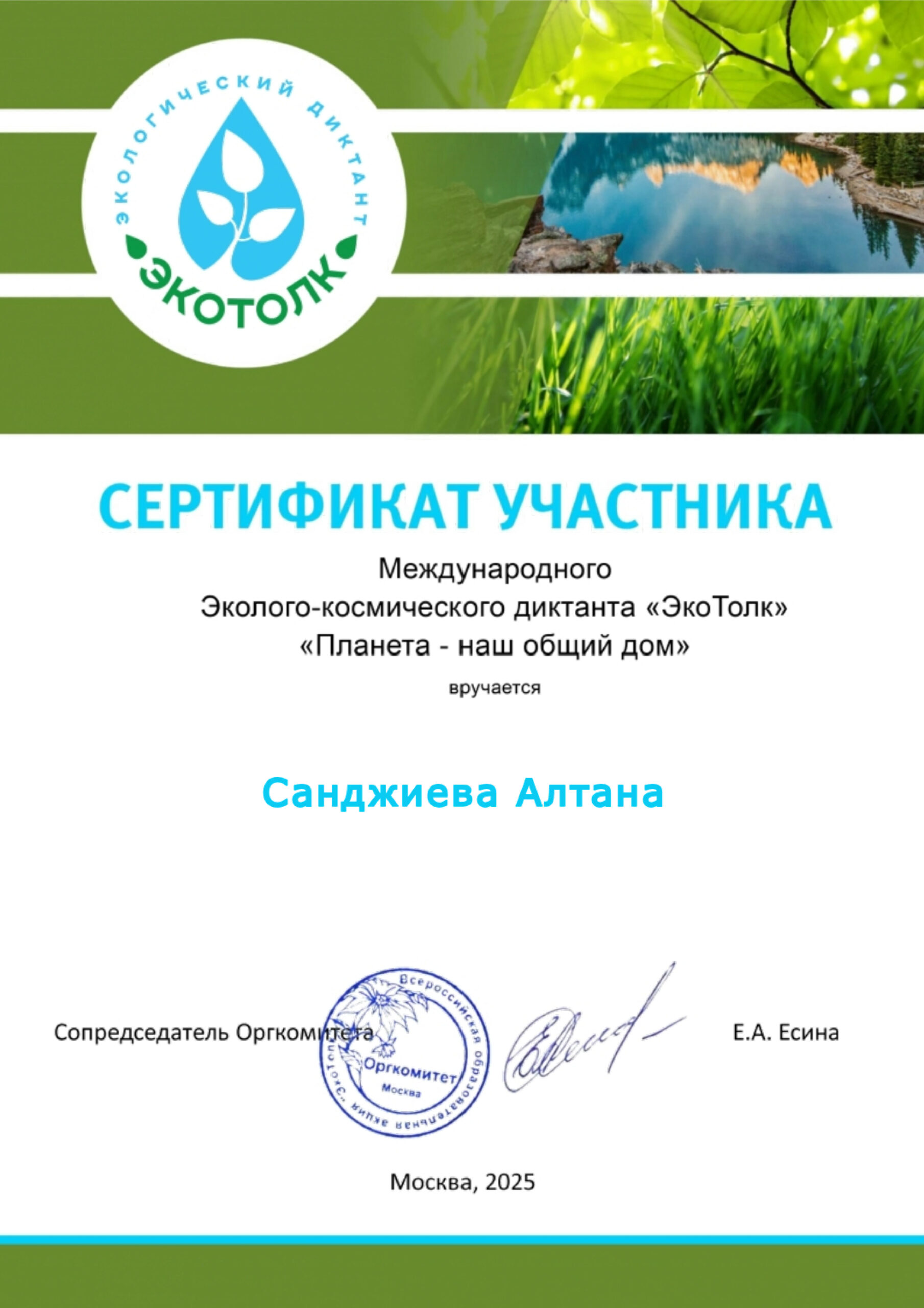 07 октября 2025 года в рамках повышения экологической грамотности, интеллектуального потенциала, привития любви к природе и бережного отношения к ней студенты группы Л-2 специальности 38.02.03 Операционная деятельность в логистике под руководством классного руководителя Тарасенко Г.А. приняли участие в Международном экологическом диктанте «ЭкоТолк», получив сертификаты участников данного мероприятия.