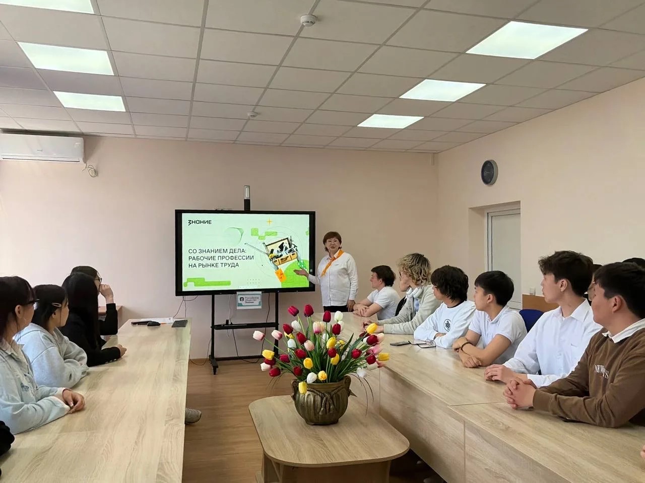 27 апреля 2026 года в КФ РГУ СоцТех в рамках Всероссийской акции Движения Первых «Мой труд – мой старт» состоялась просветительская лекция «Со знанием дела: рабочие профессии на рынке труда». Мероприятие, приуроченное к 1 Мая — Празднику Весны и Труда, провела для студентов первого курса Н.М. Когаева, советник директора по воспитанию, лектор Российского общества «Знание». Этот весенний праздник насчитывает более 130 лет и присутствует в календарях разных стран. За свою историю он менял названия: День международной солидарности трудящихся, День Интернационала. Сегодня 1 Мая для нас — символ уважения к созидательному труду и пробуждения новой жизни. В ходе беседы первокурсники узнали, какие рабочие специальности сегодня наиболее востребованы, почему за ними будущее российской экономики, а также как сочетание ручного мастерства с новыми технологиями делает эти профессии всё более престижными. Подобные встречи в рамках проекта Российского общества «Знание» помогают молодежи уже сейчас задуматься о профессиональном будущем, расширяют кругозор и формируют уважительное отношение к любому созидательному труду.