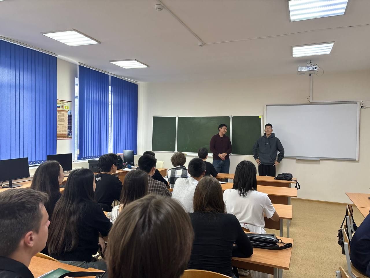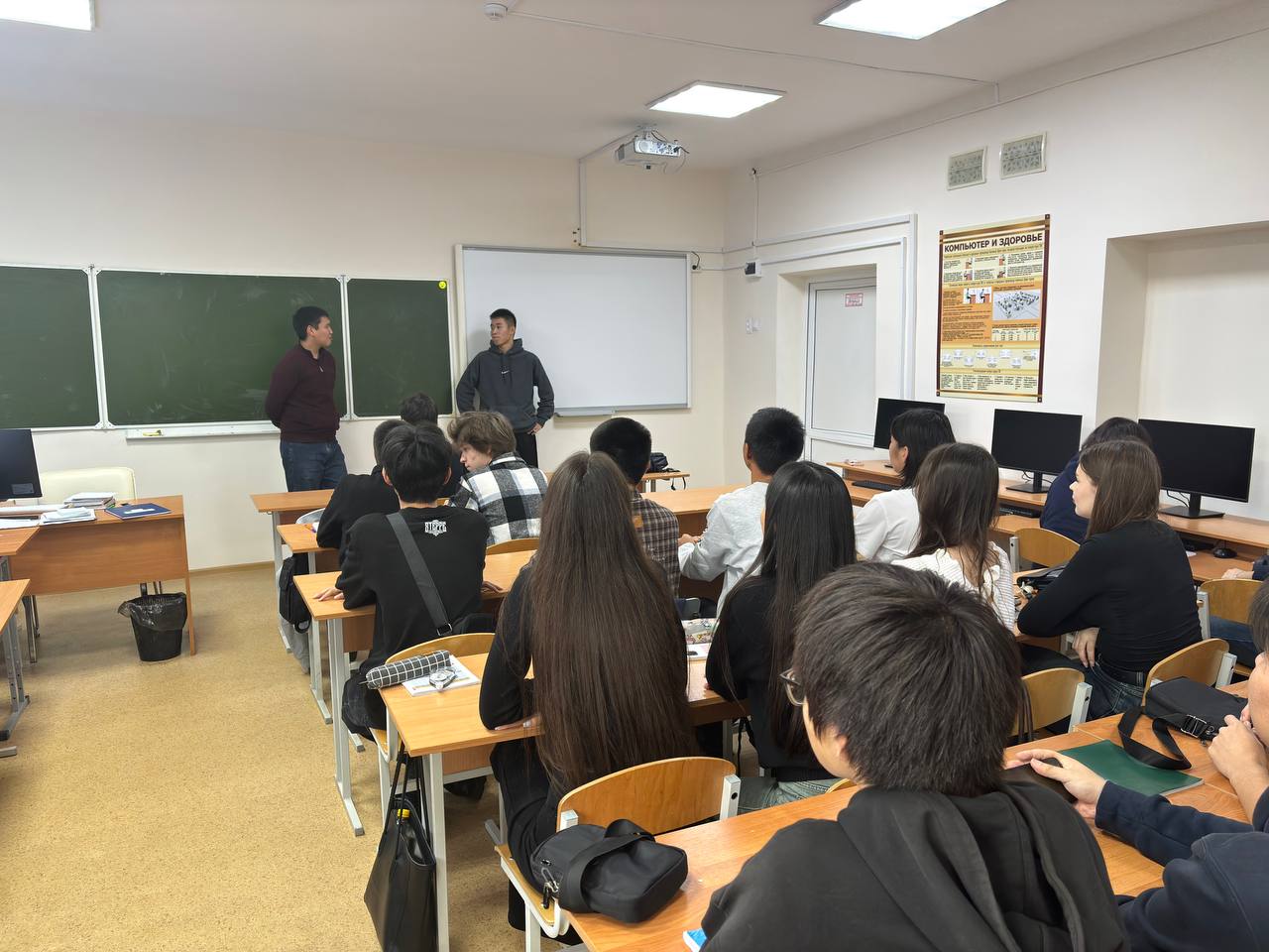 17 ноября 2025 года в рамках программы наставничества «студент-студент» прошел тематический классный час для студентов младших курсов. Студенты группы ОИ-4Б Баранов Эркен и Шалбуров Церен выступили в роли наставников.