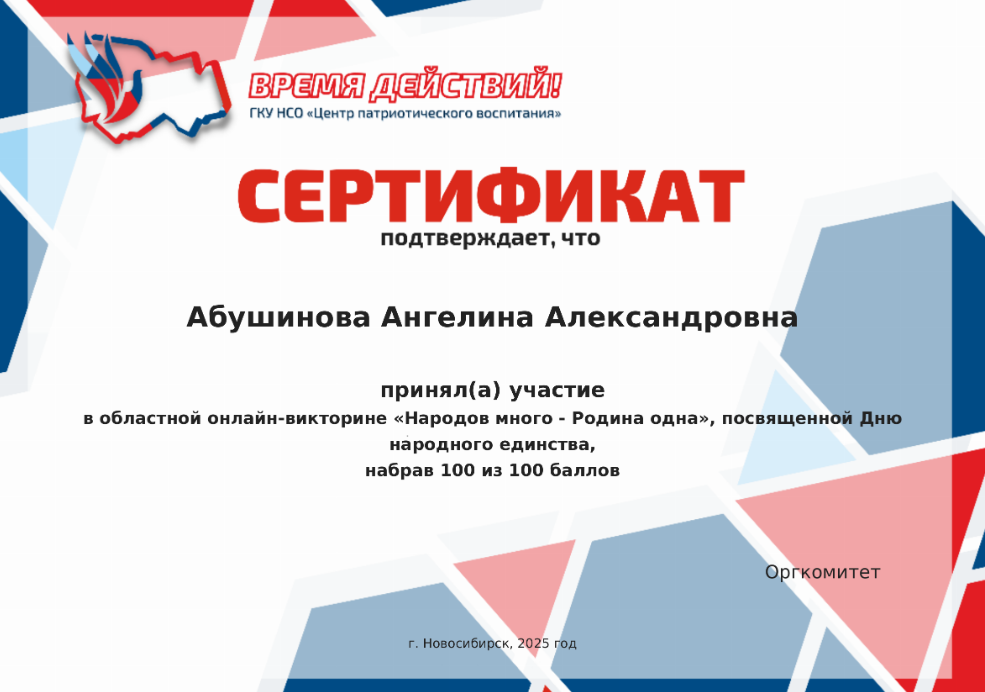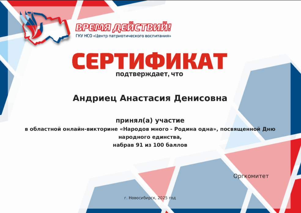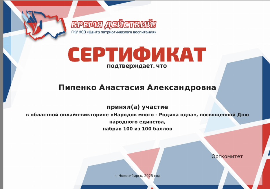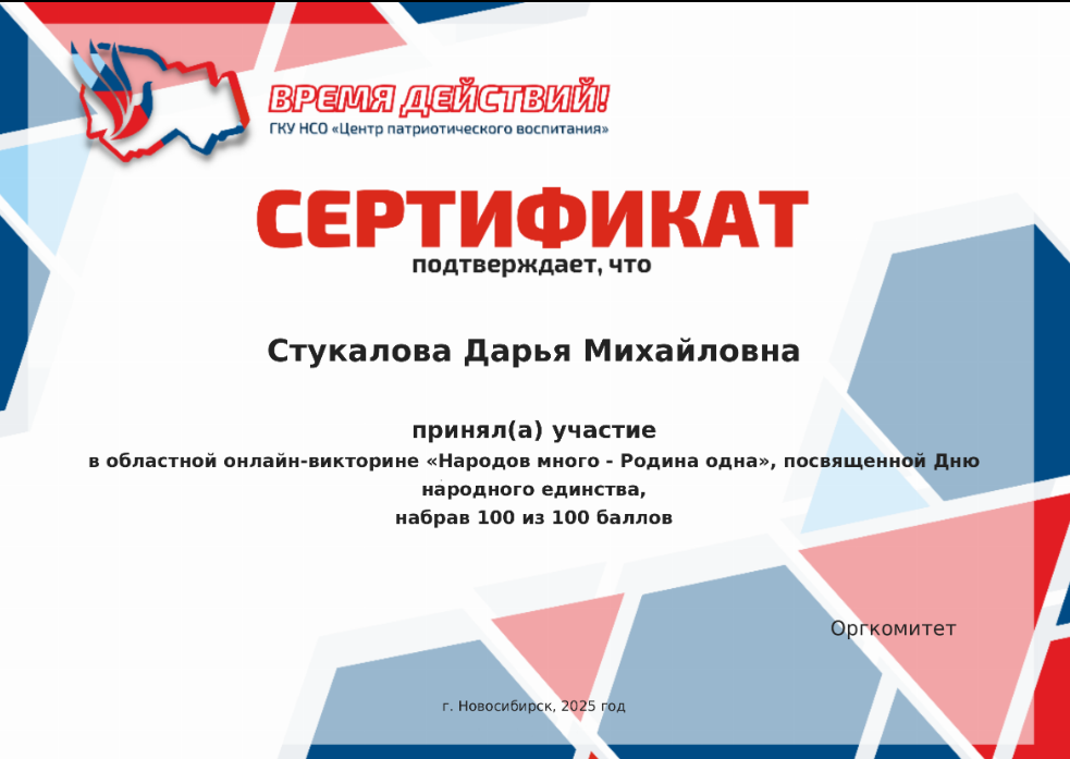 В рамках Дня народного единства 01 ноября 2025 года студенты КФ РГУ СоцТех специальности Экономика и бухгалтерский учет (по отраслям) приняли участие в онлайн-викторине «Народов много – Родина одна». Цель мероприятия – расширить знания обучающихся о Дне единства и примирения, содействовать усилению чувства гордости за Родину, способствовать воспитанию патриотических качеств. Во время выполнения заданий участники продемонстрировали свои знания об истории праздника и истории России.