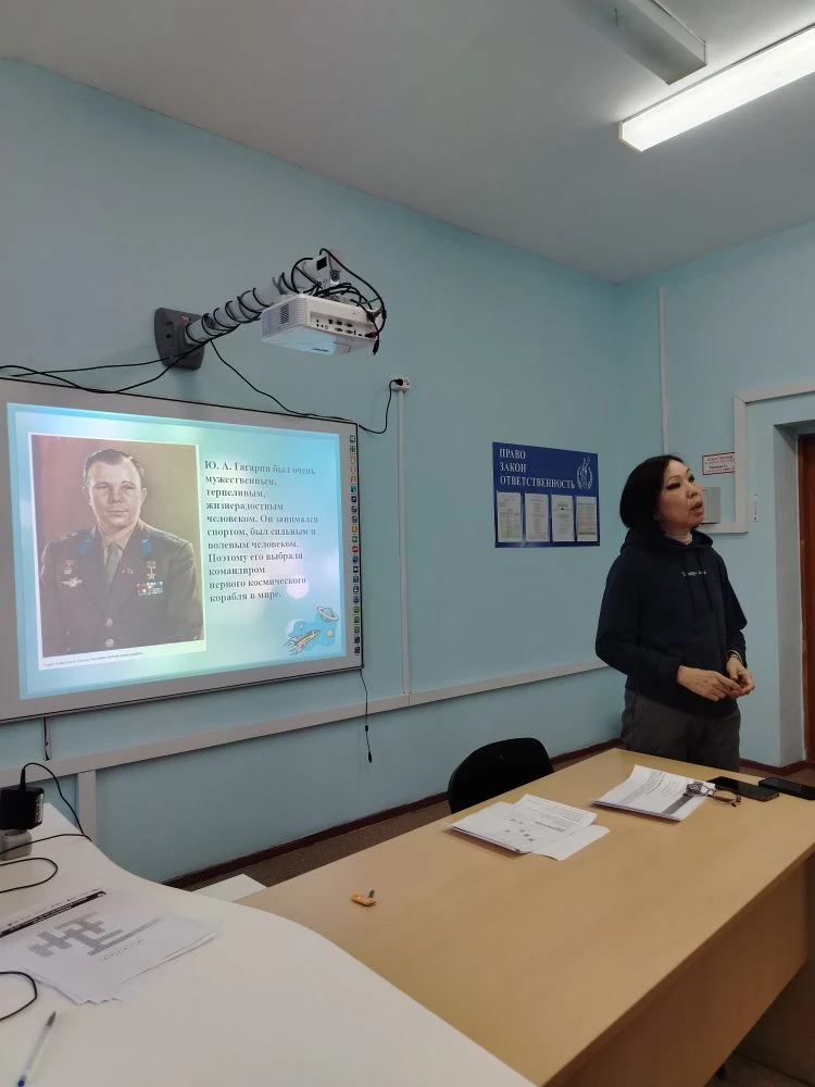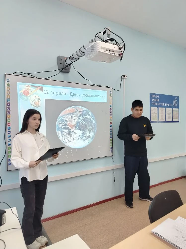 В целях расширения кругозора и формирования чувства гордости за достижения в космической сфере 13 апреля 2026 года в рамках федерального проекта «Разговоры о важном» студенты I курса специальности «Юриспруденция» (кл. рук. Басанова Д.В., Будыльская Н.В.) организовали и провели познавательный час, посвященный 65-й годовщине первого полета в космос. Молодые люди прослушали информацию об истории отечественной космонавтики, обсудили видеоролики и просмотрели презентацию по теме, решали кроссворды, отвечали на вопросы интерактивной игры. Мероприятие расширило знания студентов о ключевых фигурах отрасли (Константине Циолковском, Сергее Королеве, Юрии Гагарине и др.), о взаимосвязи космических технологий с повседневной жизнью, о современном состоянии российской космической отрасли. Будущие юристы не только узнали много нового, но и прониклись гордостью за вклад России в мировую космическую науку и технику.