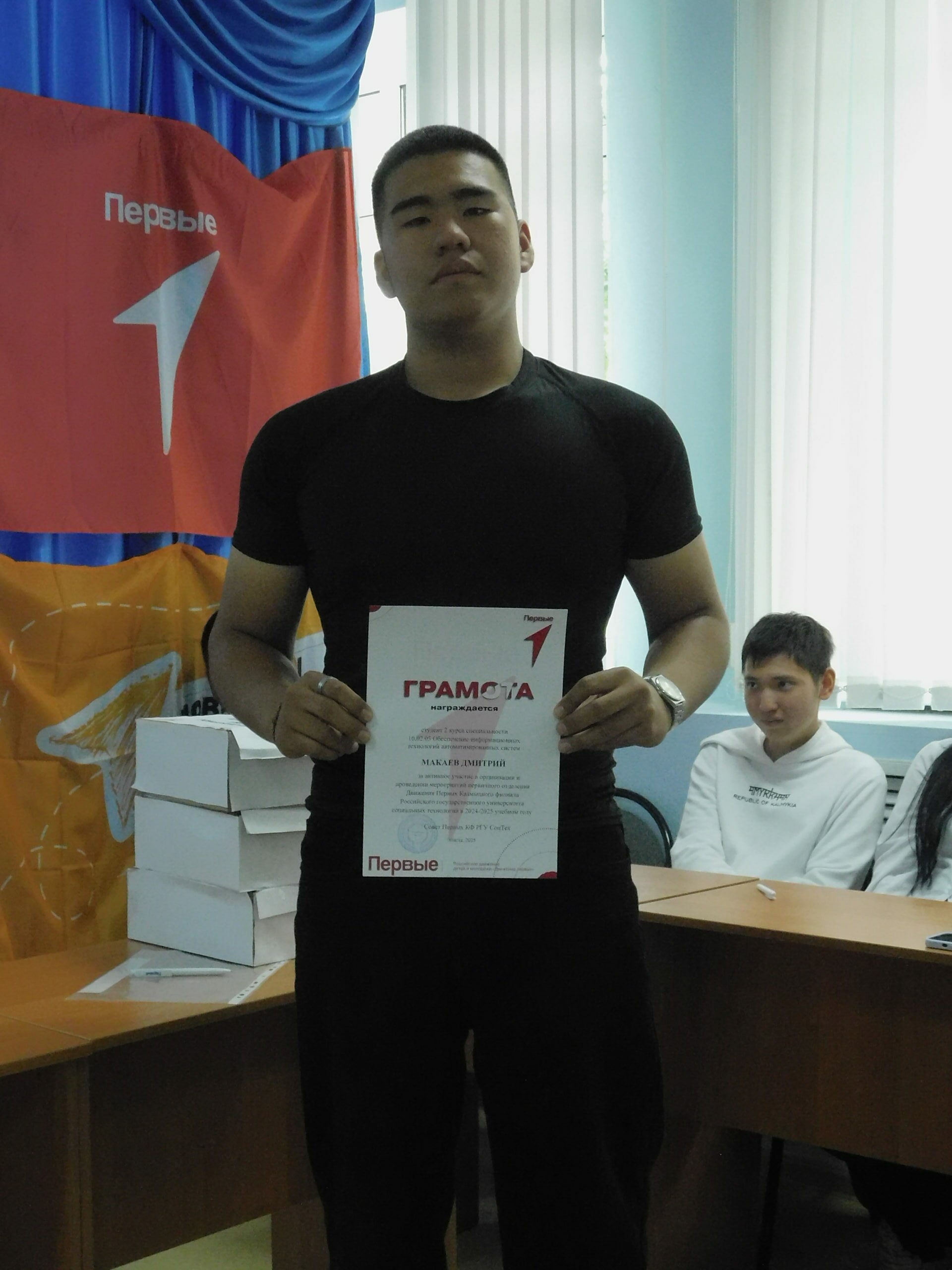 29 сентября 2025 года в КФ РГУ СоцТех состоялось отчётно-выборное собрание первичного отделения Движения Первых, в котором приняло участие 56 делегатов. Молодые люди подвели итоги работы 2024-2025 учебного года. Большинством голосов избран новый Председатель первичного отделения — Намруева Гиляш, студентка 1 курса специальности «Юриспруденция». В новый состав Совета Первых вошли самые активные студенты 1-2 курсов. Во время собрания определили основные направления работы: Патриотизм и историческая память «Служи Отчеству», Спорт «Достигай и побеждай!». Советник директора по воспитанию и взаимодействию с детскими общественными объединениями, куратор Движения Первых Когаева Н.М. поздравила новую команду Совета Первых с избранием и пожелала им неиссякаемой энергии, креативных идей и ярких высот. Самые активные члены Движения Первых были награждены грамотами первичного отделения филиала.