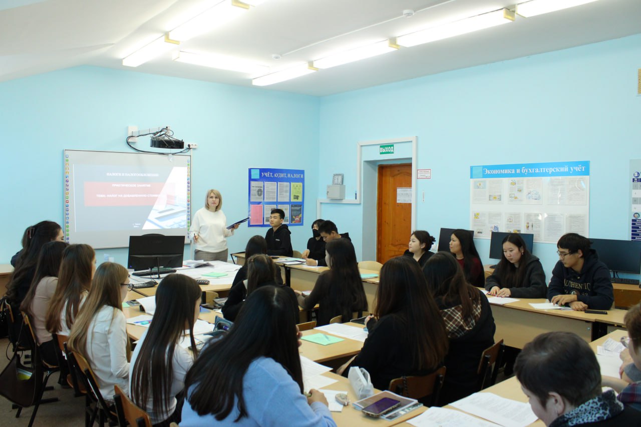 13 февраля 2026 года в Калмыцком филиале РГУ СоцТех преподаватель Кийкова Л.И. провела открытое занятие в рамках отборочного этапа всероссийского конкурса профессионального мастерства «Мастер года – 2026» для студентов группы Б-2 по теме «Налог на добавленную стоимость». Урок был построен таким образом, чтобы будущие специалисты могли не просто выучить теорию, но и применить её на практике, разбирая конкретные примеры и рассчитывая налоговые выплаты. Занятие прошло на высоком методическом уровне. Обучающиеся не только продемонстрировали теоретические знания, но и успешно справились с практическими заданиями.