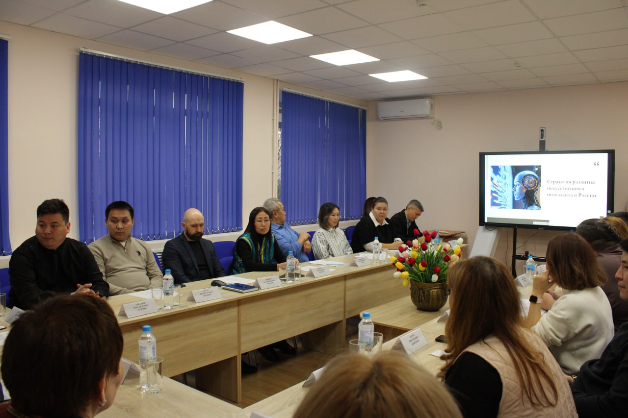 18 декабря 2025 года в КФ РГУ СоцТех состоялось заседание круглого стола по теме «Перспективы развития искусственного интеллекта». Во вступительном слове директор филиала Э.Л. Пашнанов обозначил ключевые тенденции и проблемы современного состояния искусственного интеллекта, подчеркнув, что потребность в квалифицированных кадрах в данной области растёт, так как искусственный интеллект проникает во все сферы жизни и деятельности человека. Участники мероприятия — Этеев А.П., заместитель Председателя Правительства Республики Калмыкия – Министр цифрового развития Республики Калмыкия, Убушиева З.П., начальник отдела науки и развития регионального образования Министерства образования и науки Республики Калмыкия, Харкибенова О.Н., директор Калмыцкого филиала ПАО «Ростелеком» Муниев А.М., директор АНО ДО «Центр развития компетенций будущего» IT-кластера «Цифровая Калмыкия», Церенов А.Д., начальник отдела по обеспечению деятельности Фиджитал-центра г. Элисты, преподаватели предметно-цикловой комиссии информационных технологий и кибербезопасности — обсудили стратегии развития искусственного интеллекта в России, а также приоритеты развития направления «Искусственный интеллект». Во второй части состоялась презентация специальности «Интеграция решений с применением технологий искусственного интеллекта», в ходе которой председатель ПЦК Катрикова Ц.Ю. подробно рассказала об особенностях подготовки специалистов по искусственному интеллекту.