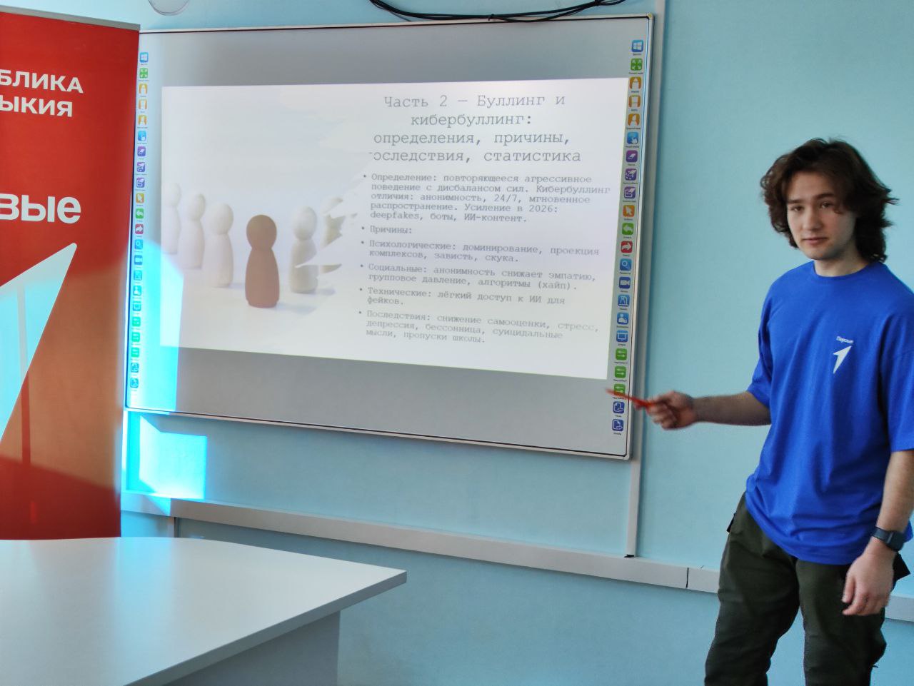 16 февраля 2026 года студенты КФ РГУ СоцТех – киберволонтеры Движения Первых провели просветительский час проекта «Школа кибербезопасности» в рамках Всероссийской акции «Наши защитники Отечества», посвященной Дню защитника Отечества для студентов – первокурсников. Юные киберволонтеры на примерах объяснили: как распознать фишинговые сайты и мошенников в социальных сетях, почему важно создавать сложные пароли и не использовать один и тот же пароль для разных сервисов, как не стать жертвой кибербуллинга и куда обращаться, если столкнулся с травлей в интернете. Встреча прошла в формате живого диалога. Первокурсники задавали вопросы о цифровом следе, безопасности онлайн-покупок и правилах общения в мессенджерах. Организаторы уверены, что такие уроки помогают студентам чувствовать себя увереннее и безопаснее в современном цифровом мире. Мероприятие прошло в дружеской атмосфере, ведь старшие товарищи всегда готовы поделиться опытом с младшими курсами. Спасибо киберволонтерам за важную и нужную работу!