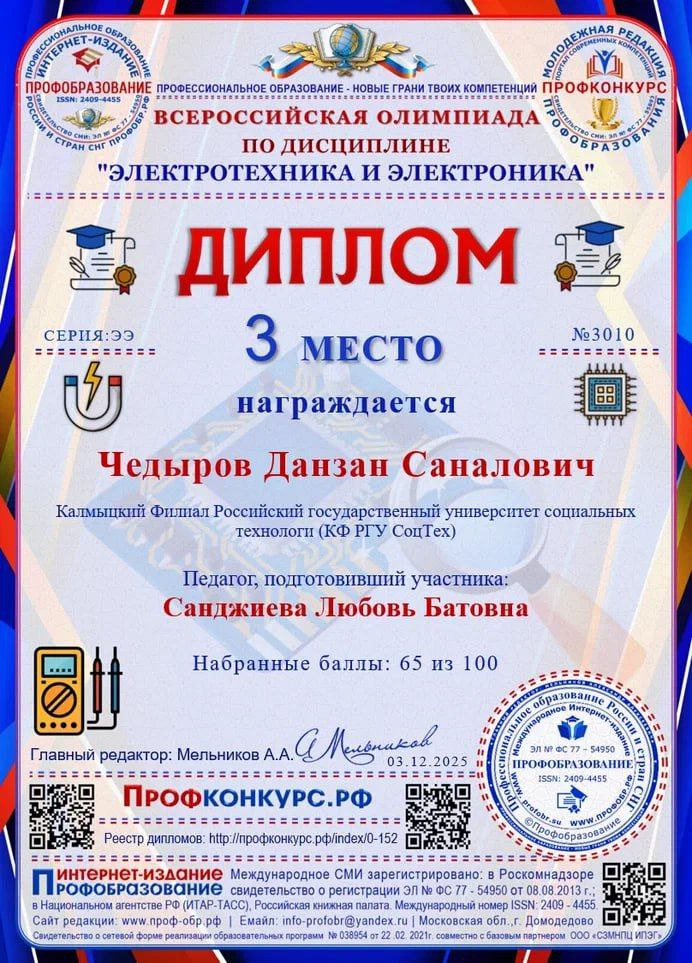 6 декабря студенты КФ РГУ СоцТех приняли участие в Профессиональном конкурсе «Профконкурс.РФ — Всероссийская Олимпиада по дисциплине «Электротехника и электроника», организованном Порталом современных компетенций Профобразования.