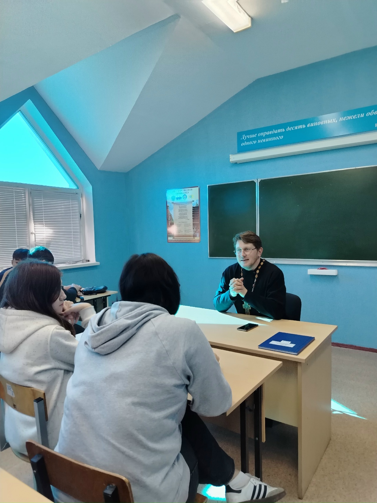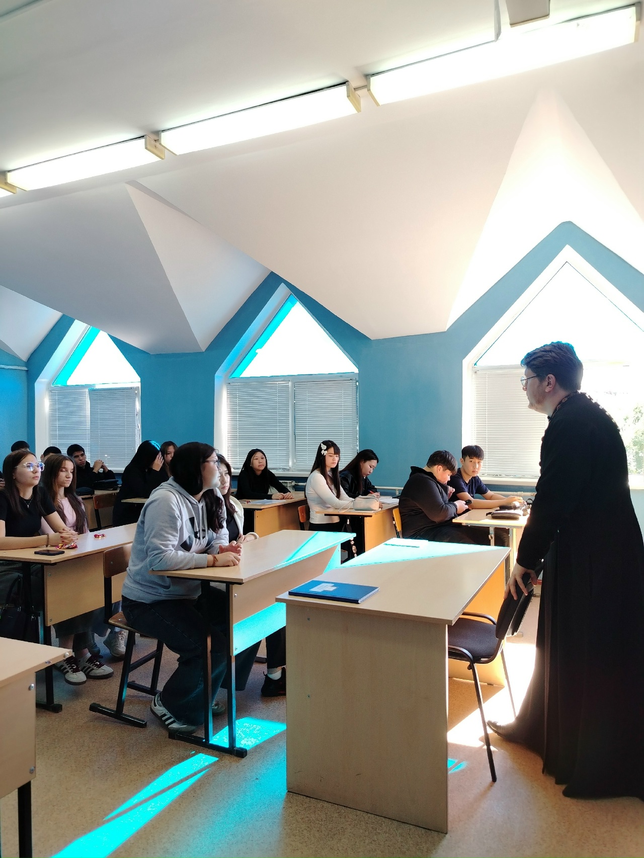 27 октября 2025 года в рамках федерального проекта «Разговоры о важном» в группах Ю-1А и Ю-1Б специальности «Юриспруденция» (кл. рук. Басанова Д.В., Будыльская Н.В.) проведена беседа «Поговорим об уважении» с приглашением протоиерея Элистинской и Калмыцкой епархии Антония Зимовца. Отец Антоний в доступной форме рассказал об одной из ключевых человеческих ценностей — уважении. В ходе беседы студенты узнали, что уважение — это умение видеть ценность другого человека, его труд и опыт, что оно проявляется в словах, поступках и в готовности слушать и понимать. Особое внимание отец Антоний уделил человеческим взаимоотношениям, подчеркнув их важность как основы нравственности и духовного здоровья общества.