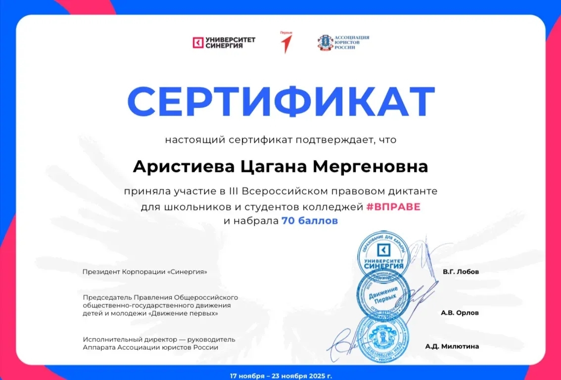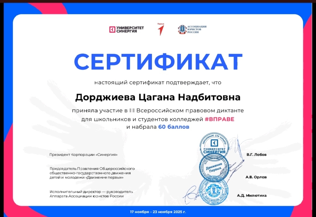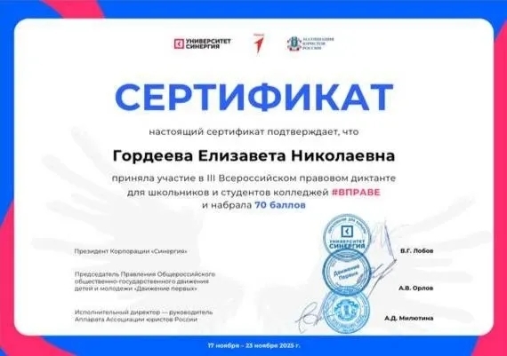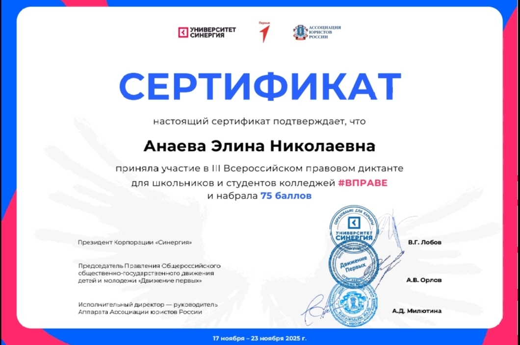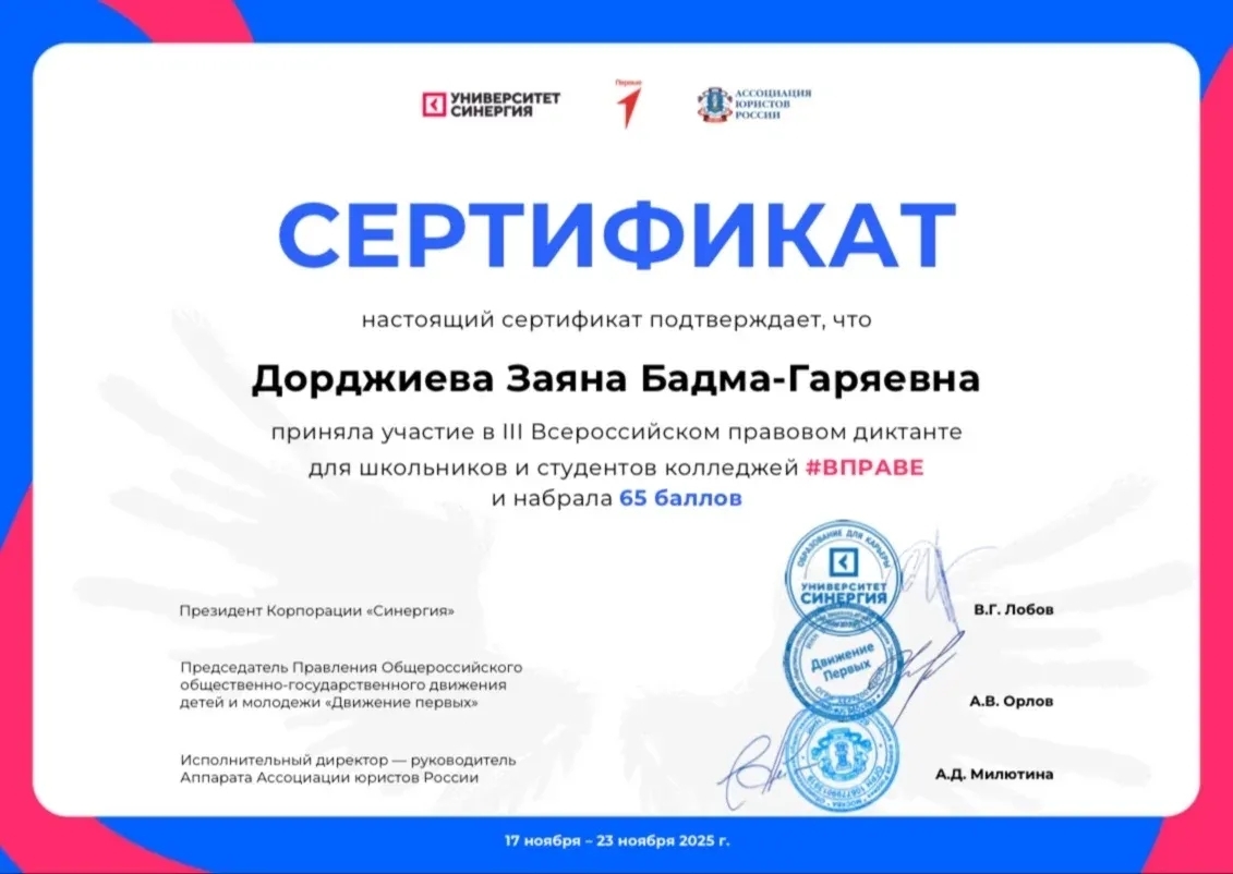 В целях укрепления в сознании молодежи уважения к закону и повышения уровня правосознания 19 ноября 2025 года студенты специальности «Юриспруденция» приняли участие в III Всероссийском правовом диктанте #ВПРАВЕ. Мероприятие стало отличной возможностью проверить свои знания в области права и углубить понимание юридических основ, которые будут полезны в их будущей профессиональной деятельности. Участие в этом масштабном мероприятии не только способствует повышению правовой грамотности, но и формирует активную гражданскую позицию среди молодежи. Студенты с интересом и энтузиазмом выполняли задания, демонстрируя свои навыки и стремление к обучению. Это шаг к тому, чтобы стать более образованными и ответственными юристами.