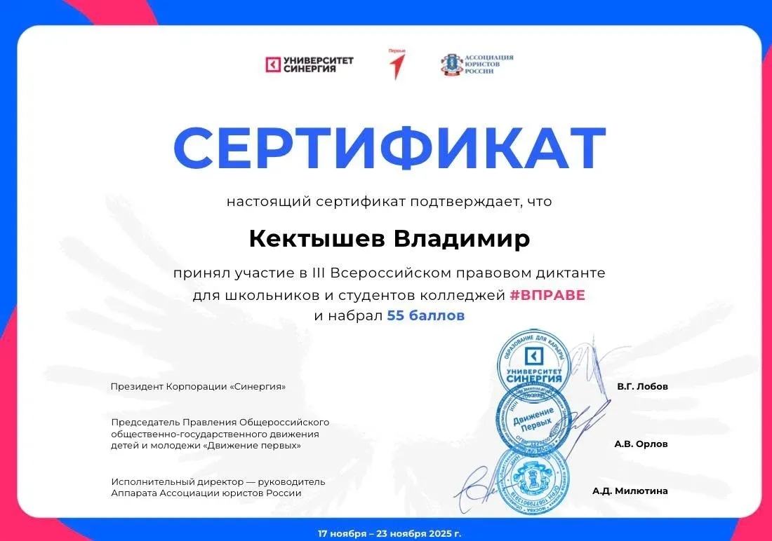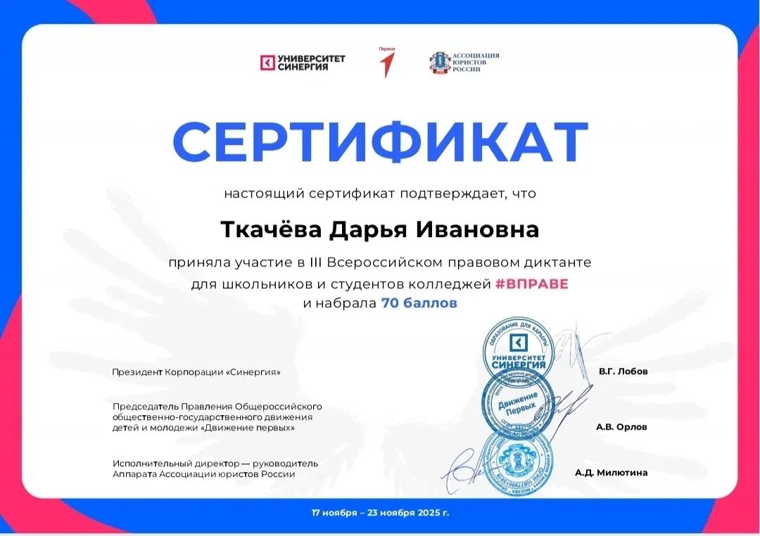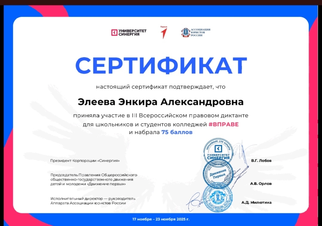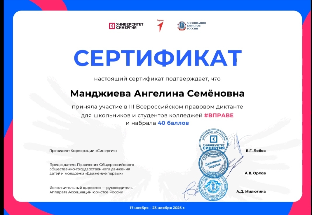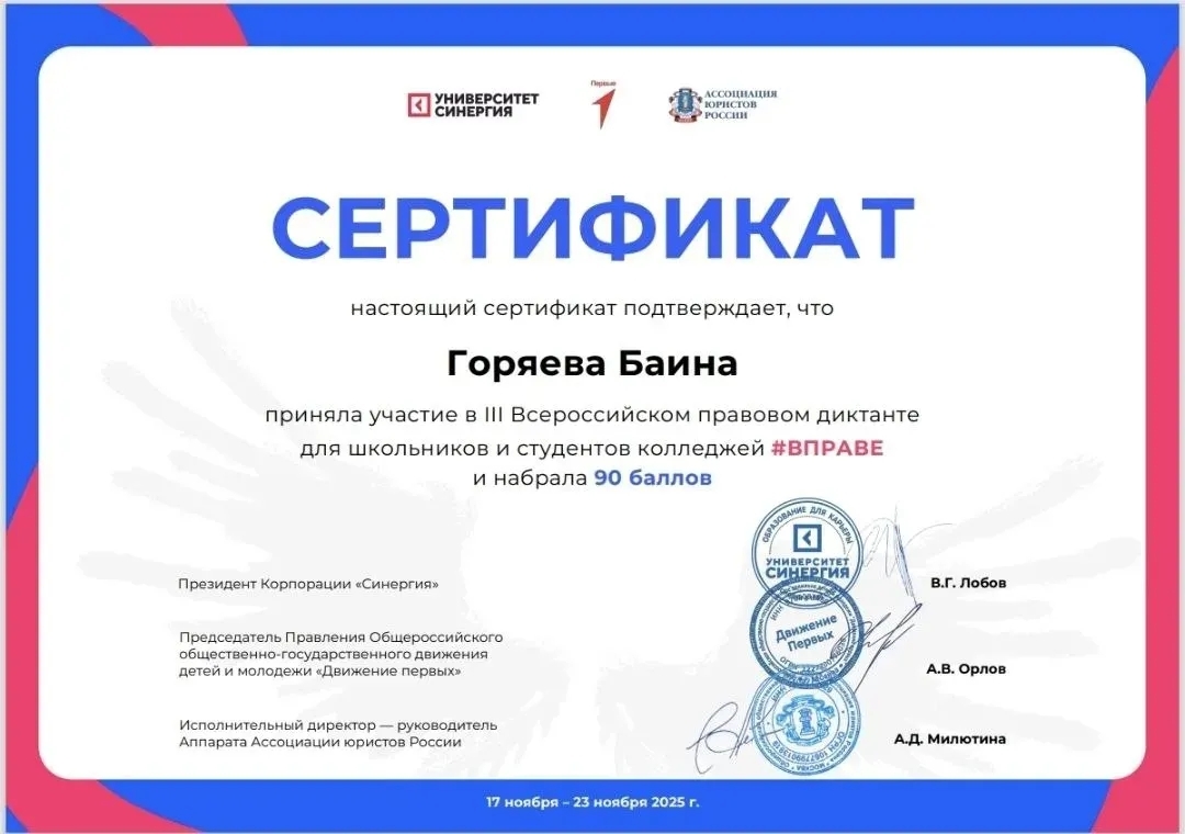 В целях укрепления в сознании молодежи уважения к закону и повышения уровня правосознания 19 ноября 2025 года студенты специальности «Юриспруденция» приняли участие в III Всероссийском правовом диктанте #ВПРАВЕ. Мероприятие стало отличной возможностью проверить свои знания в области права и углубить понимание юридических основ, которые будут полезны в их будущей профессиональной деятельности. Участие в этом масштабном мероприятии не только способствует повышению правовой грамотности, но и формирует активную гражданскую позицию среди молодежи. Студенты с интересом и энтузиазмом выполняли задания, демонстрируя свои навыки и стремление к обучению. Это шаг к тому, чтобы стать более образованными и ответственными юристами.