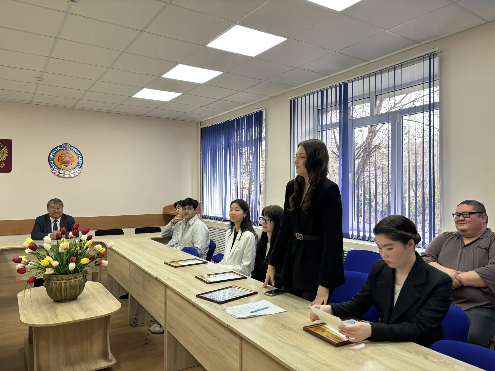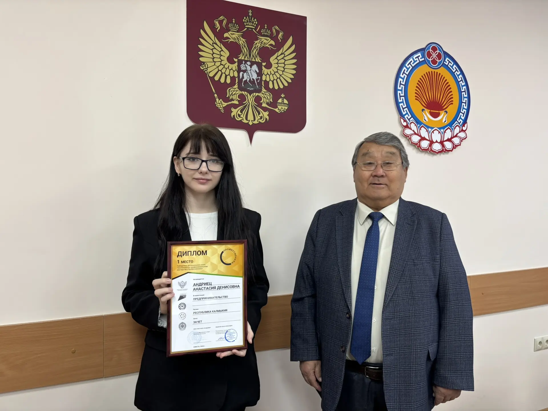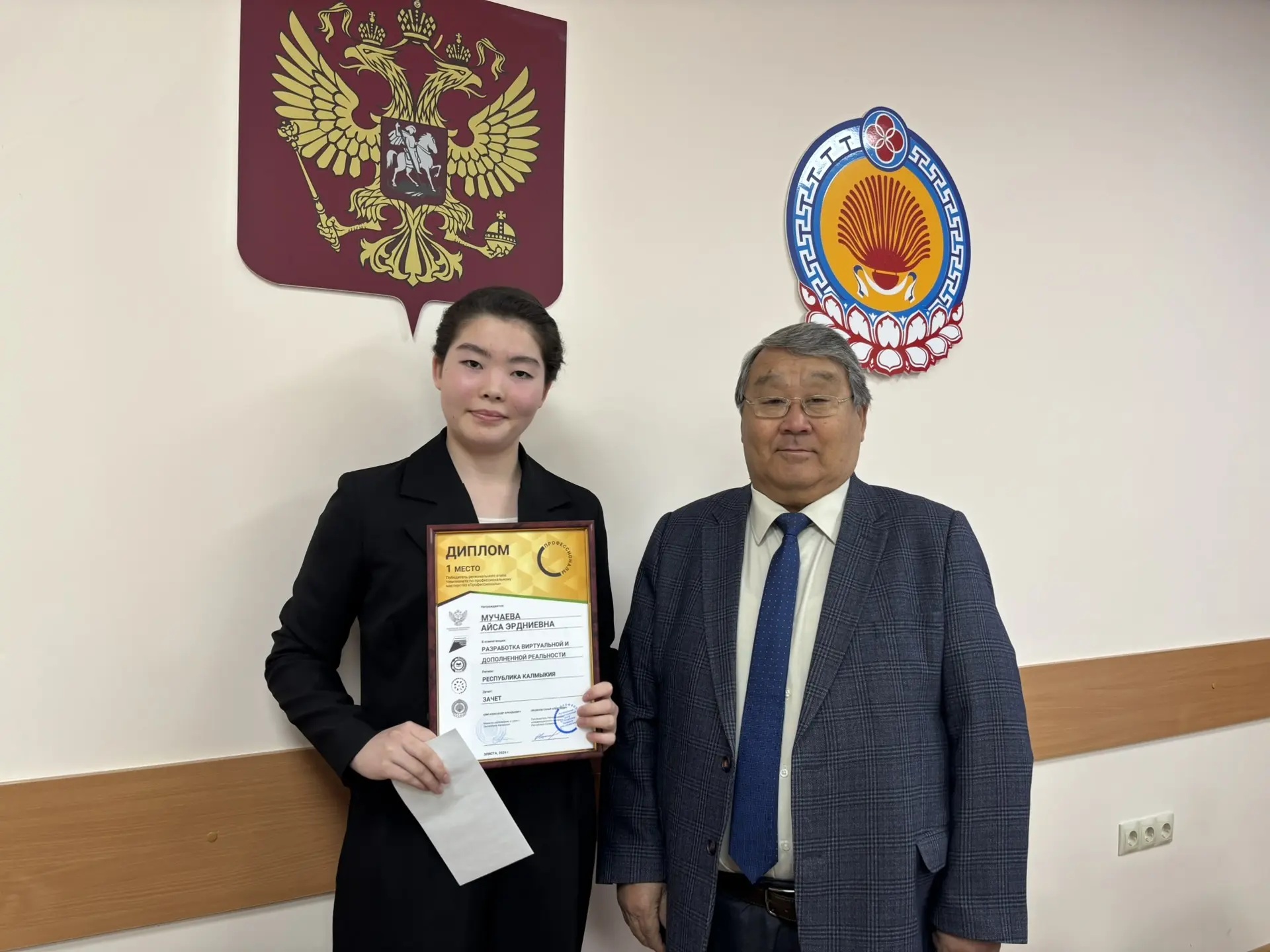 17 марта 2026 года в КФ РГУ СоцТех состоялось торжественное премирование победителей Регионального этапа Чемпионата по профессиональному мастерству Профессионалы-2026 в Республике Калмыкия, по итогам которого будущие специалисты достойно представили учебное заведение, успешно выступив на различных площадках, заняв призовые места по различным компетенциям. Директор филиала Э.Л. Пашнанов в своём поздравлении отметил, что администрация и педагогический коллектив искренне гордятся каждым и благодарят за то, что молодые люди с честью представляют филиал. Кроме того, Эрдне Лиджиевич поблагодарил всех наставников и экспертов за их труд, усердие и профессионализм, отметив огромный вклад в профессиональное воспитание молодежи. В завершение победители выразили благодарность наставникам за теоретико-практическую подготовку и поддержку во время чемпионата.