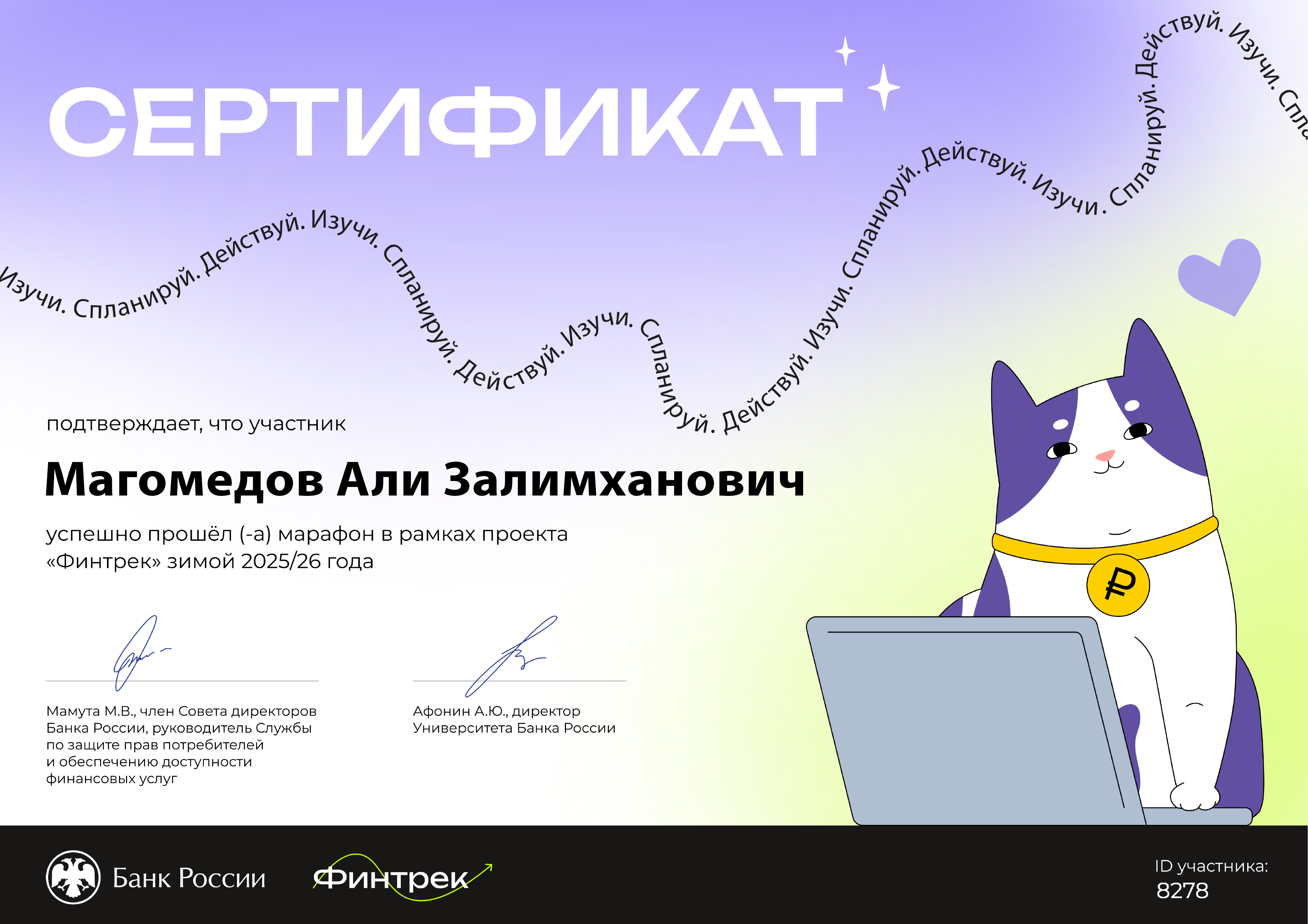 По завершению вебинара студенты, успешно сдавшие проверочные тестирования и справившиеся с выполнением представленных кейсовых заданий, получили именные сертификаты участников проекта «Финтрек».