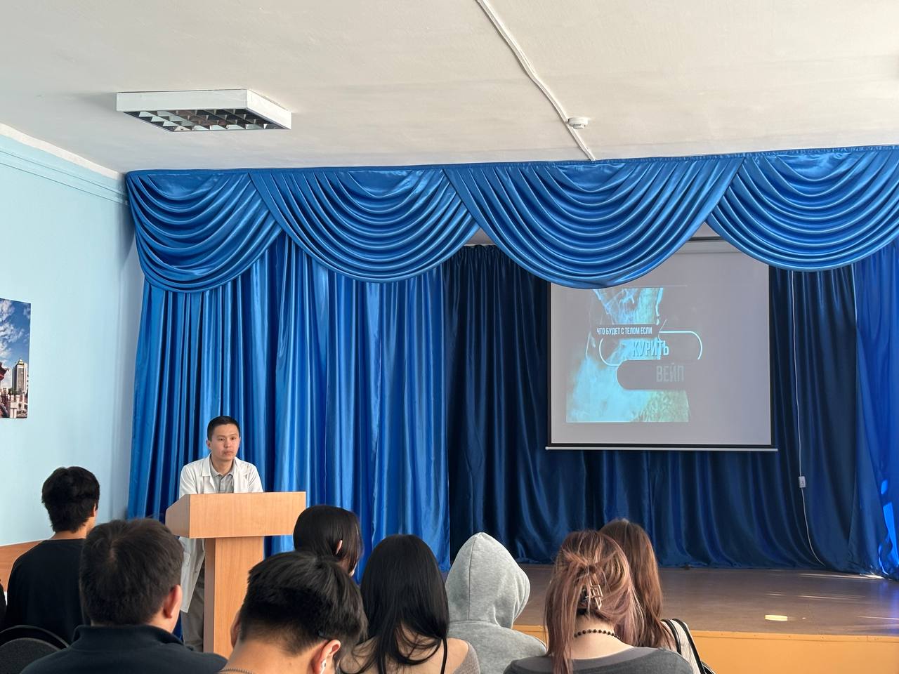 В целях предупреждения распространения табакокурения и наркомании 12 марта 2026 года в КФ РГУ СоцТех состоялась встреча студентов 2 года обучения с врачом-психологом БУ РК «Республиканский наркологический диспансер» Боковым Д.С.