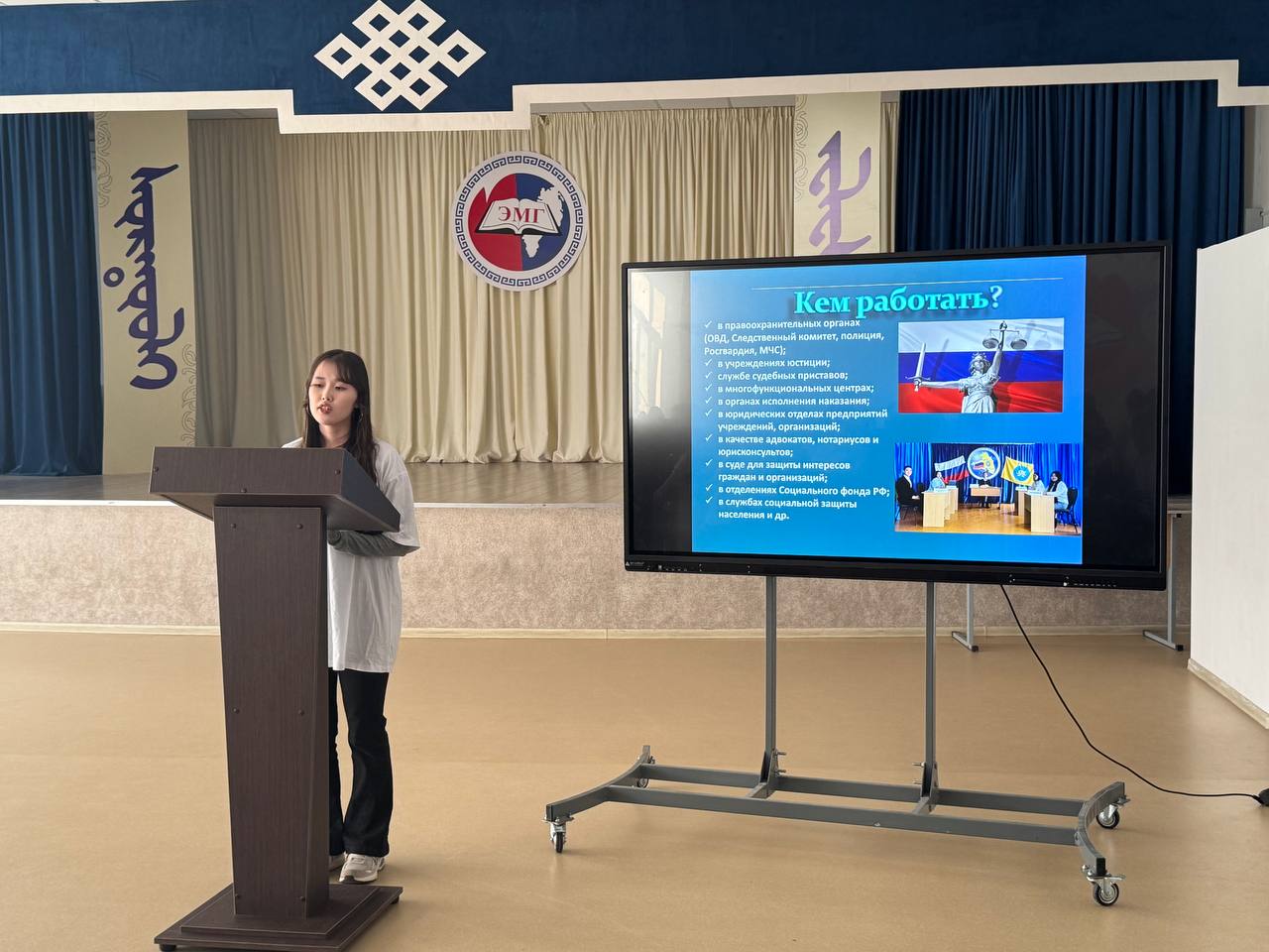 25 ноября 2025 года преподаватель Какушкина Л.В. и активисты профориентационного отряда «ПРАВИЛЬНЫЙ ВЫБОР» встретились с учениками 9-х классов МБОУ «Элистинская многопрофильная гимназия личностно-ориентированного обучения и воспитания». Учащиеся просмотрели видеоролики и презентации о направлениях профессионального обучения в Калмыцком филиале РГУ СоцТех. Студенты рассказали о преимуществах профессии юриста, бухгалтера, логиста, техника-программиста, техника по защите информации. Во время встречи учащиеся узнали о перспективах и возможностях поступления в наш филиал. Активисты профориентационного отряда ответили на интересующие вопросы, пригласили в наше учебное заведение.