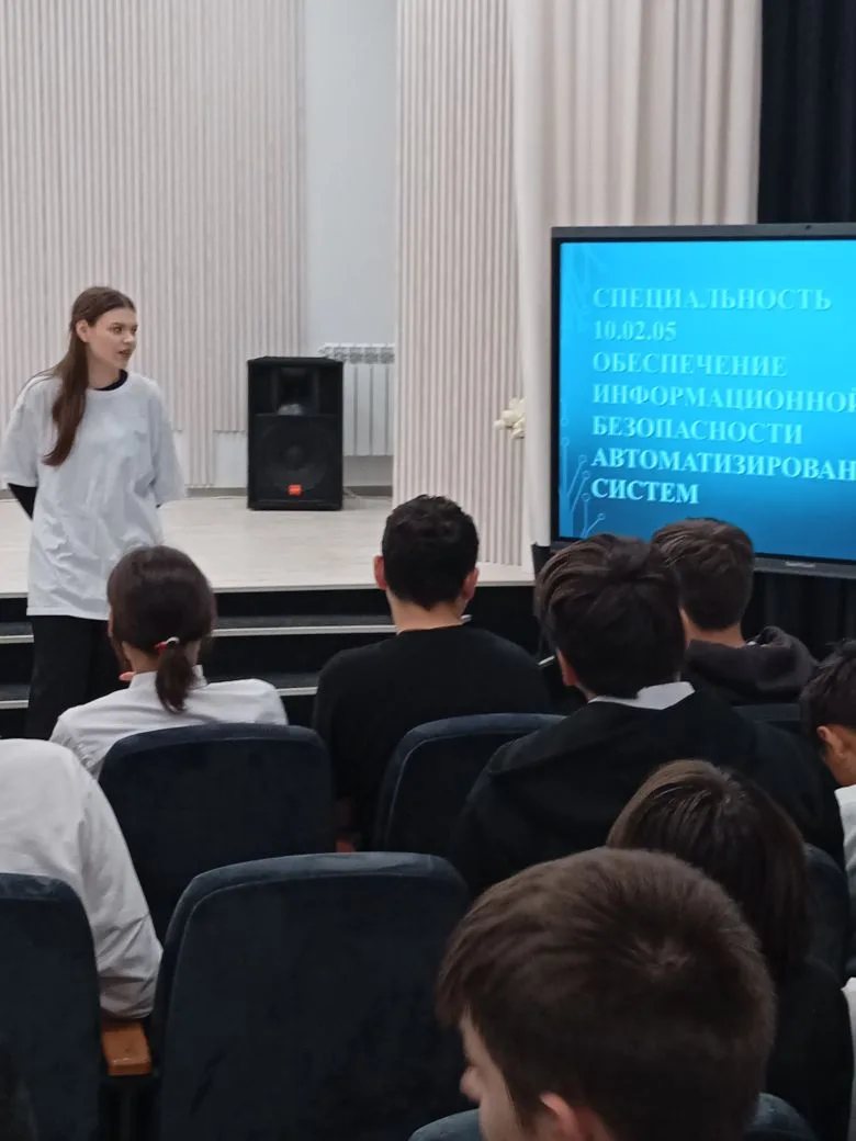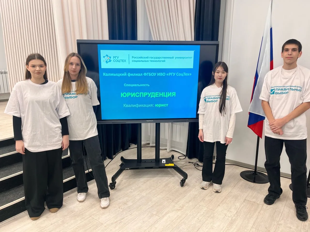 29 ноября 2025 года преподавателем Бамбушевой Н.С. совместно со студентами профориентационного отряда «Правильный выбор» проведена профориентационная работа с учащимися 9-ых классов в МБОУ «СОШ №2». Активисты рассказали и показали презентацию о специальностях, которые можно получить в Калмыцком филиале, о возможностях продолжения обучения в головном ВУЗе. Будущие абитуриенты получили информацию о правилах приема и сроках подачи документов, о профильных классах, о мероприятиях, проводимых в филиале. Участники встречи получили ответы на интересующие вопросы.