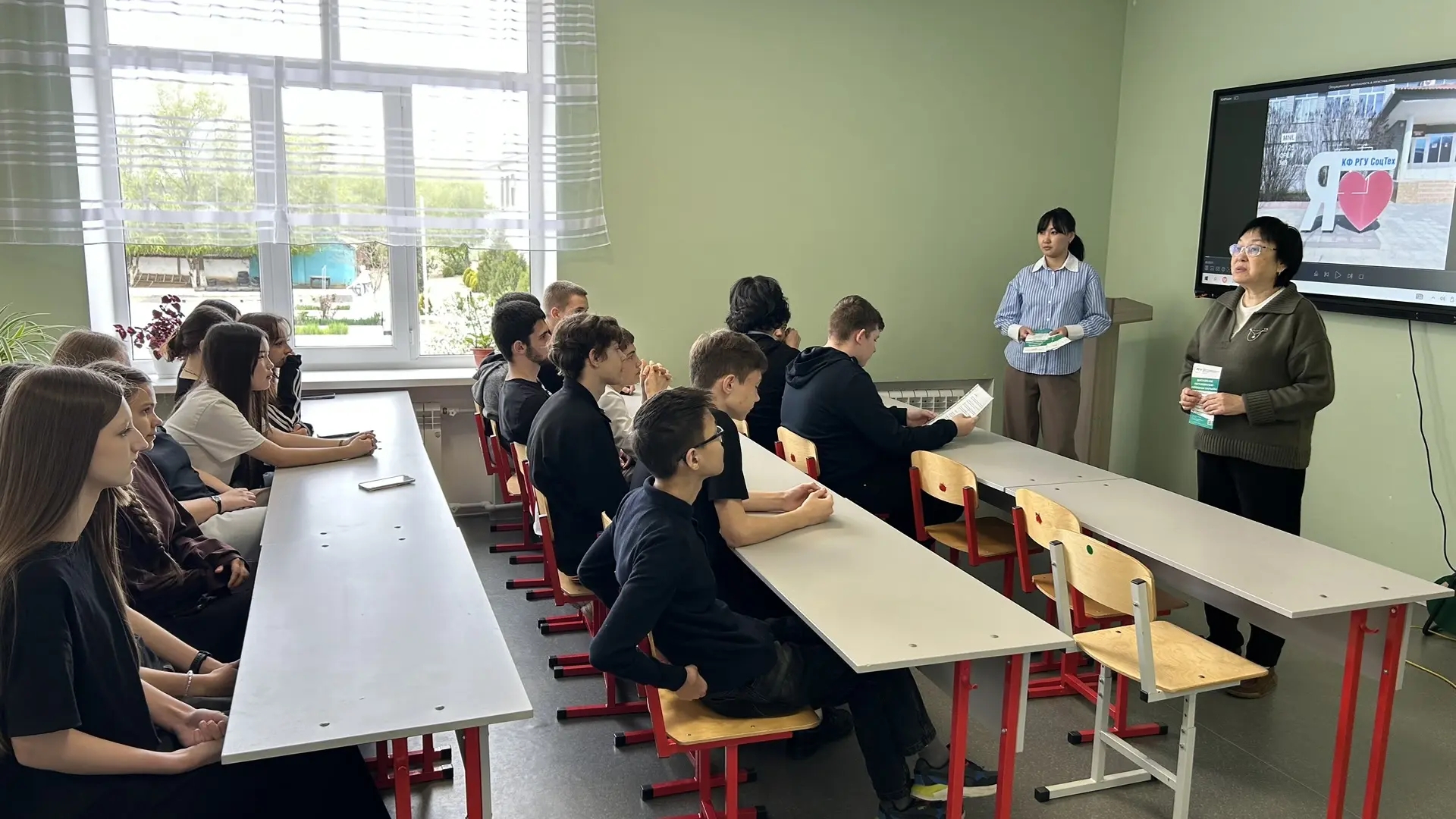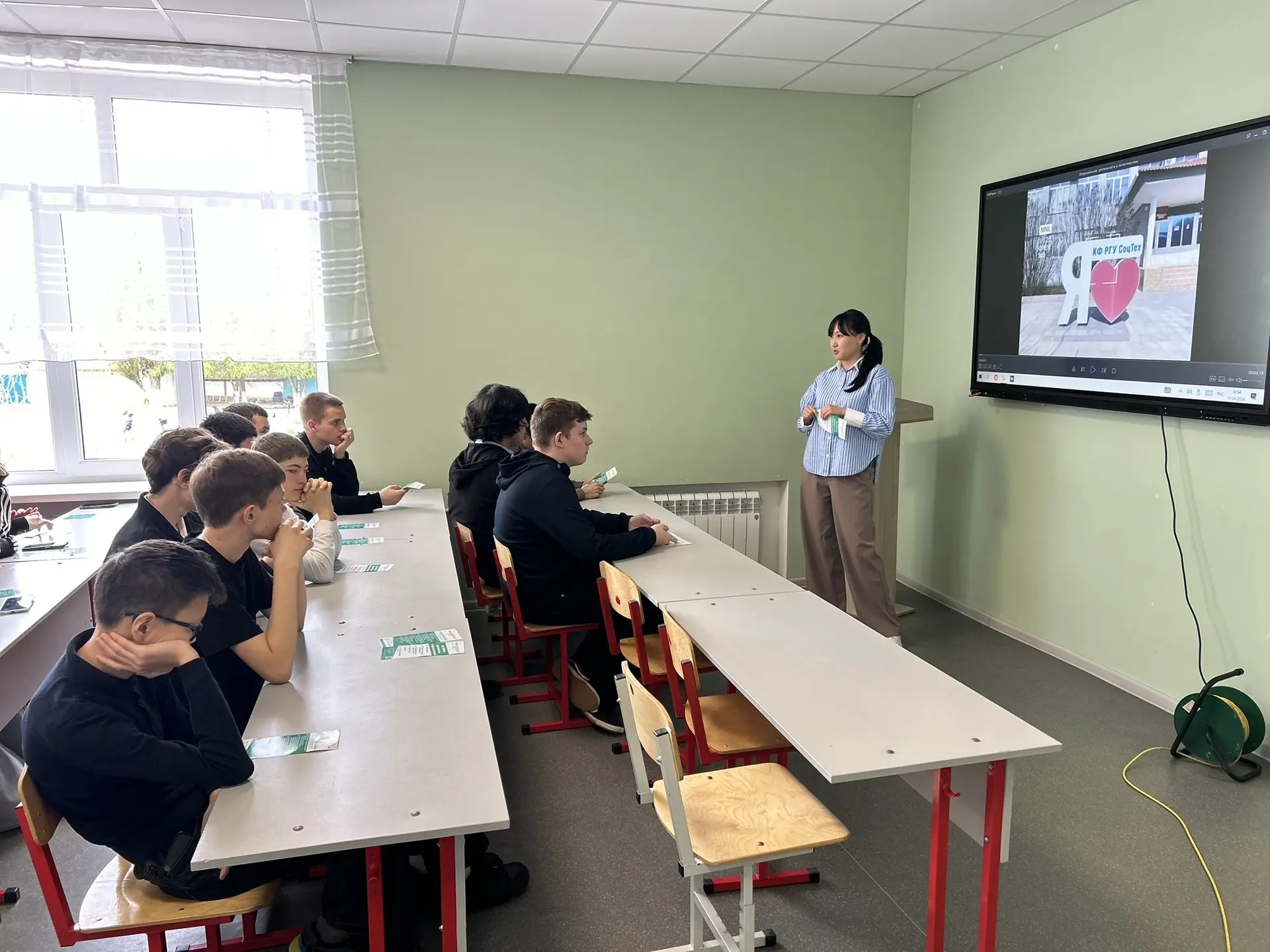 18 апреля 2026 года преподавателями КФ РГУ СоцТех Каляновой Г.А., Нарановой С.Б.  и Сидоровой В.А. проведена профориентационная выездная встреча с обучающимися 9-ых классов МКОУ «Комсомольская Гимназия имени Баатра Басангова», МКОУ «Комсомольская СОШ им.Н.С.Манджиева», МКОУ «Лаганская СОШ №1 им.Люлякина И.М.», МКОУ «Многопрофильная гимназия г. Лагани имени Героя Российской Федерации Лиджиева Мингияна Владимировича», МКОУ «Лаганская СОШ № 3 им.Очирова Лиджи-Горя Босхомджиевича», МКОУ «Лаганская СОШ №4 им.Джамбинова Замбы Эрдниновича» Черноземельского и Лаганского районов РК.