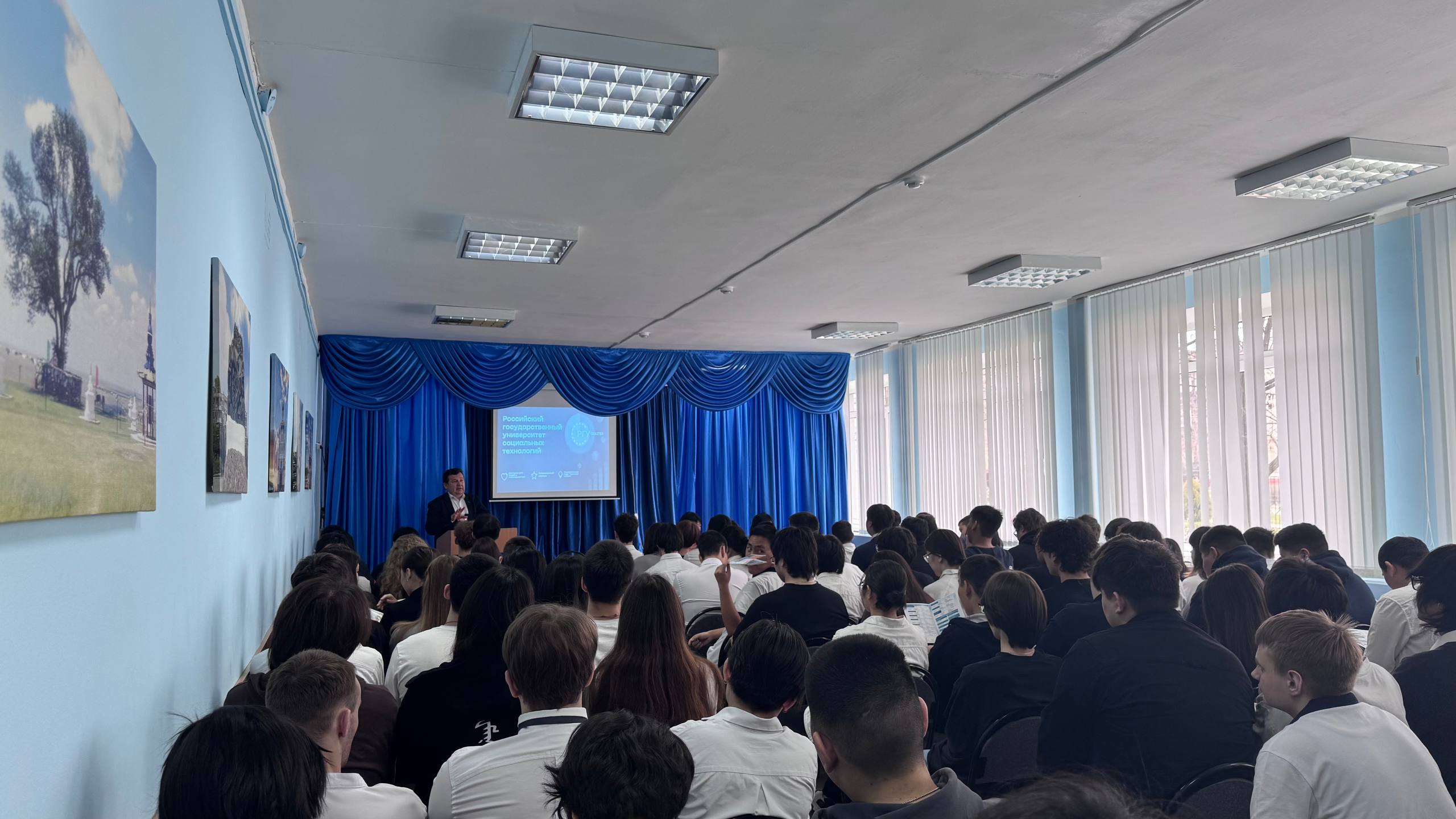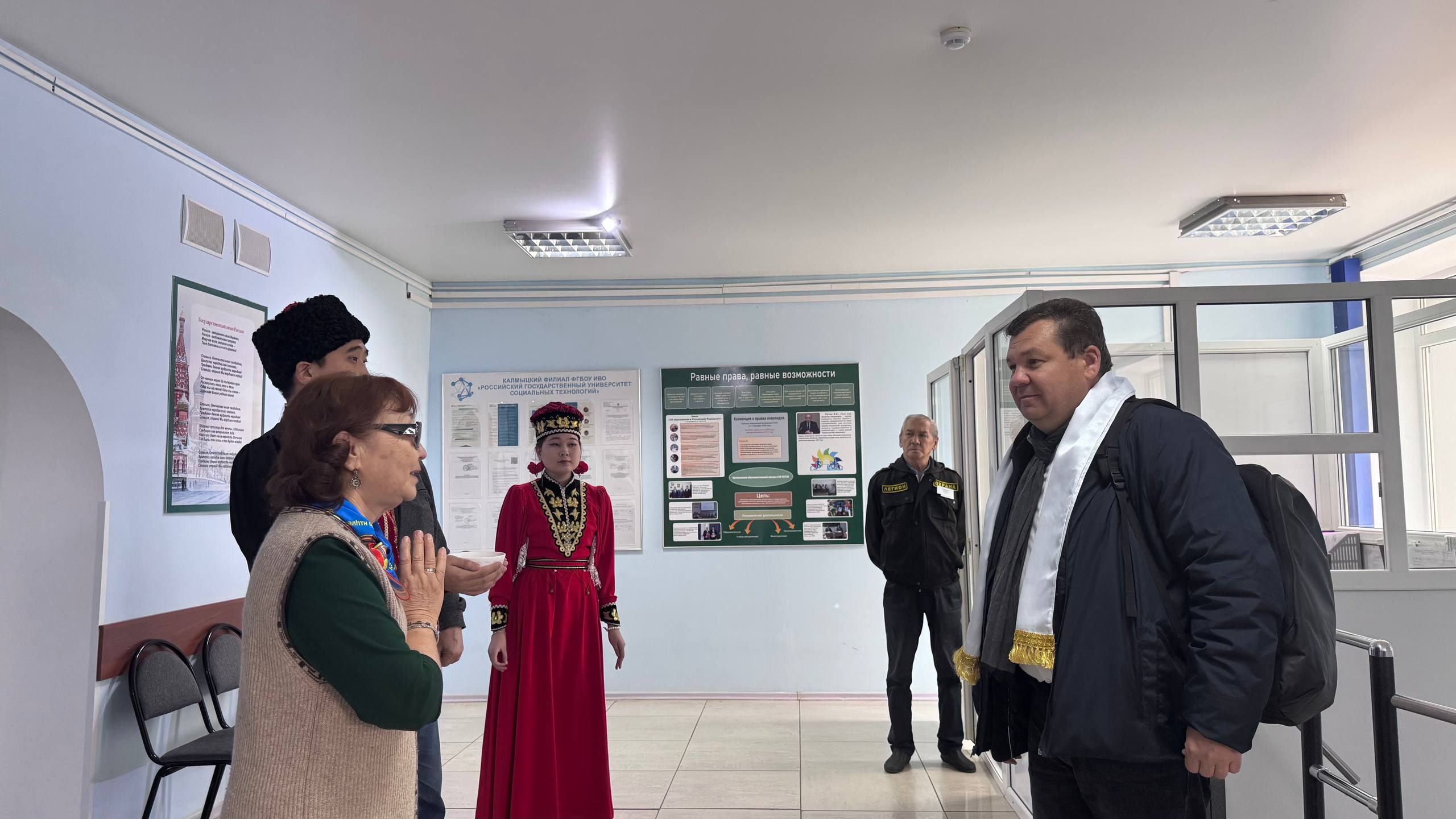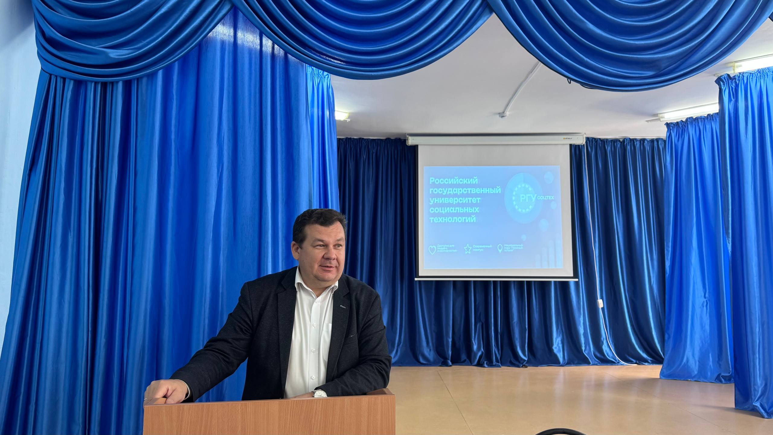 24 марта 2026 года декан факультета экономики ФГБОУ ИВО «РГУ СоцТех» Хакимов Р.М. посетил с рабочим визитом Калмыцкий филиал РГУ СоцТех. Во время визита представитель головного вуза ознакомился с материально-технической базой образовательного учреждения, посетил экскурсии по мемориалу «У войны не женское лицо» и музею истории филиала. Во второй части Руслан Мадаминджанович встретился со студентами выпускных групп, во время которой рассказал о перспективном развитии университета, а именно о реализуемых специальностях, особенностях учебно-воспитательного процесса, правилах приёма в вуз. Будущие абитуриенты задавали вопросы об организации досуга студентов, стипендиальной системе, трудоустройстве после окончания учебы — на что получили исчерпывающие ответы. Следующий вопрос обсуждения с выпускниками – формирование и развитие элитных войск БПЛА в структуре российских Вооруженных сил, созданных специально для проведения боевых операций с использованием беспилотных комплексов различного профиля и назначения. Молодых людей также ознакомили со специальными условиями заключения контракта для службы в войсках, а также дополнительными льготами.