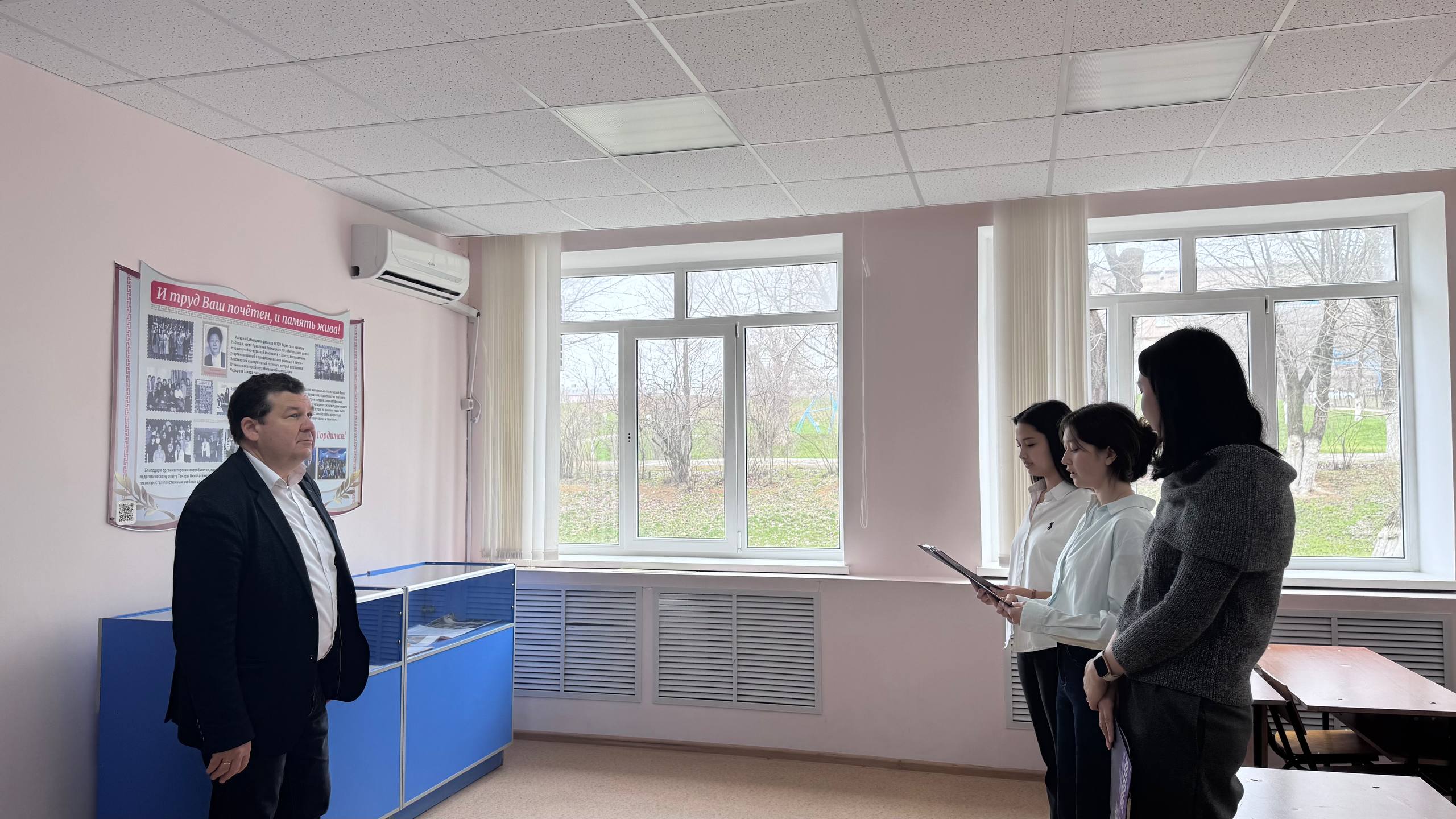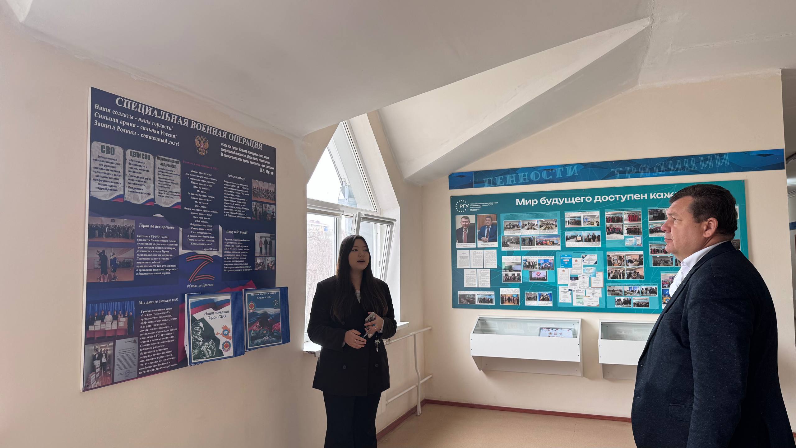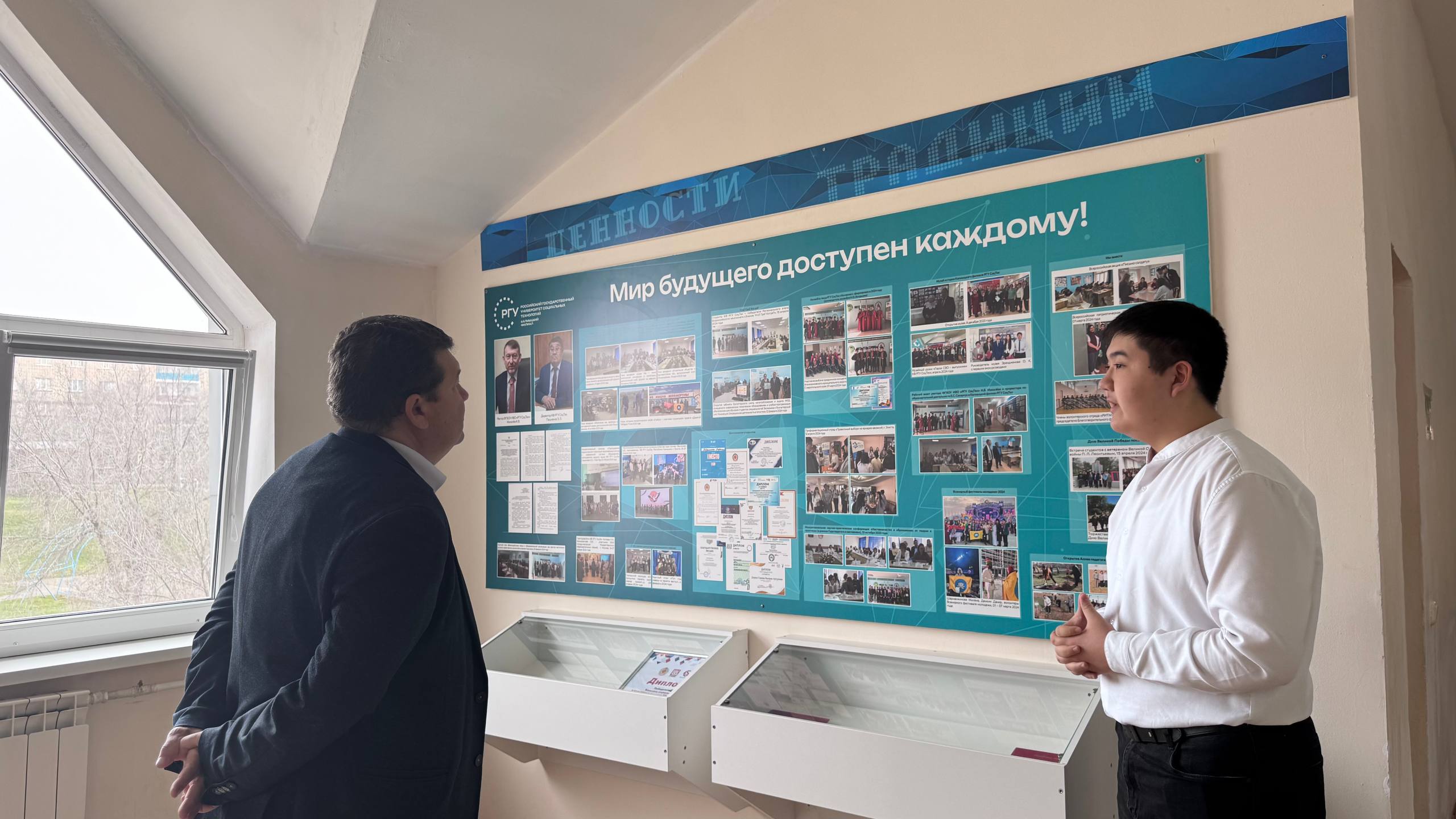 24 марта 2026 года декан факультета экономики ФГБОУ ИВО «РГУ СоцТех» Хакимов Р.М. посетил с рабочим визитом Калмыцкий филиал РГУ СоцТех. Во время визита представитель головного вуза ознакомился с материально-технической базой образовательного учреждения, посетил экскурсии по мемориалу «У войны не женское лицо» и музею истории филиала. Во второй части Руслан Мадаминджанович встретился со студентами выпускных групп, во время которой рассказал о перспективном развитии университета, а именно о реализуемых специальностях, особенностях учебно-воспитательного процесса, правилах приёма в вуз. Будущие абитуриенты задавали вопросы об организации досуга студентов, стипендиальной системе, трудоустройстве после окончания учебы — на что получили исчерпывающие ответы. Следующий вопрос обсуждения с выпускниками – формирование и развитие элитных войск БПЛА в структуре российских Вооруженных сил, созданных специально для проведения боевых операций с использованием беспилотных комплексов различного профиля и назначения. Молодых людей также ознакомили со специальными условиями заключения контракта для службы в войсках, а также дополнительными льготами.