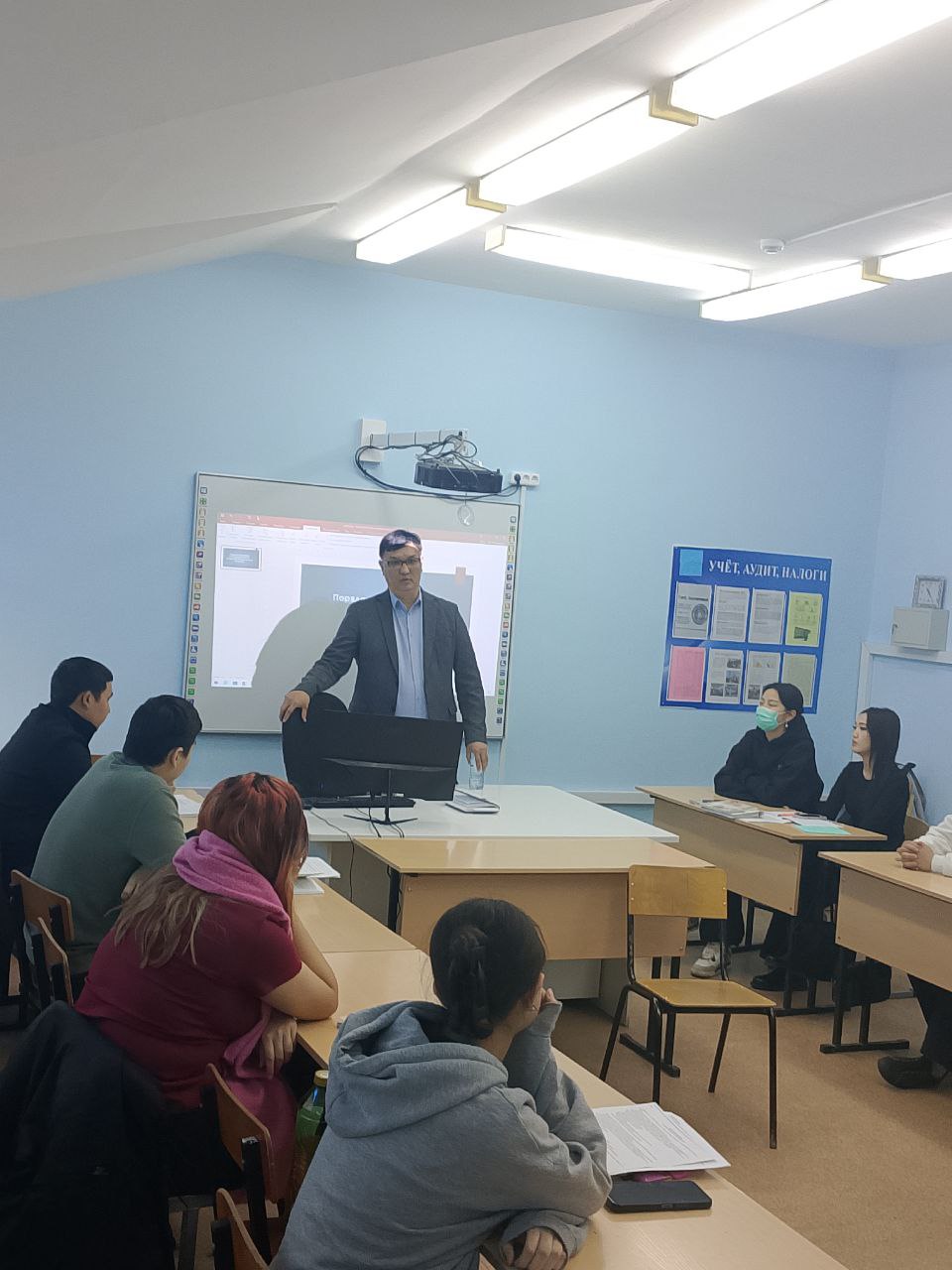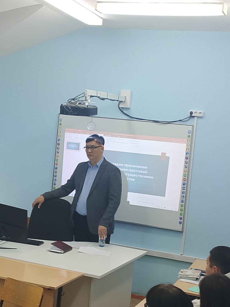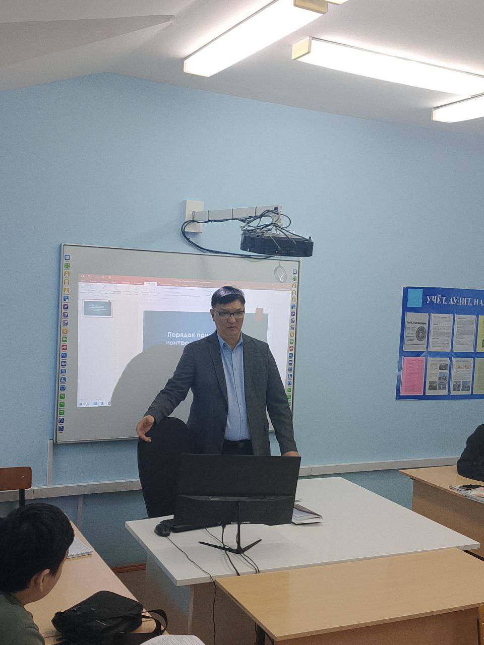 18 декабря 2025 года в целях развития сетевого взаимодействия и эффективного сотрудничества в развитии профессиональных компетенций будущих специалистов в области бухгалтерского учета преподавателем Кийковой Л.И. проведен совместный урок с Очировым Миньяном Геннадьевичем, заместителем начальника отдела оперативного контроля УФНС России по Республике Калмыкия в группе Б-3 по дисциплине «Налоги и налогообложение» по теме «Контрольно-кассовая техника как инструмент обеспечения полноты и своевременности исчисления налогов».