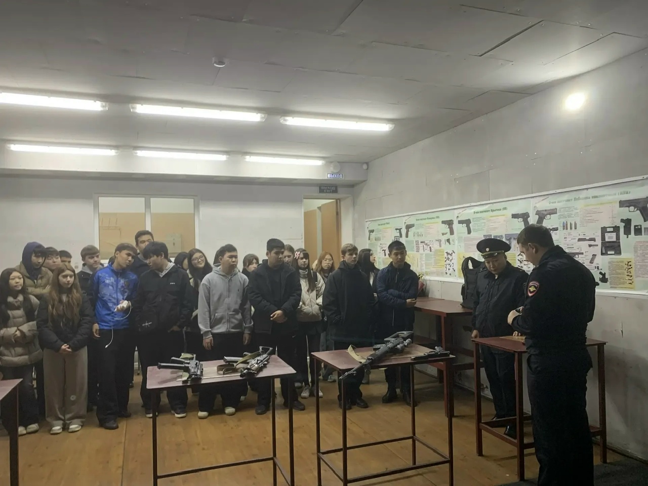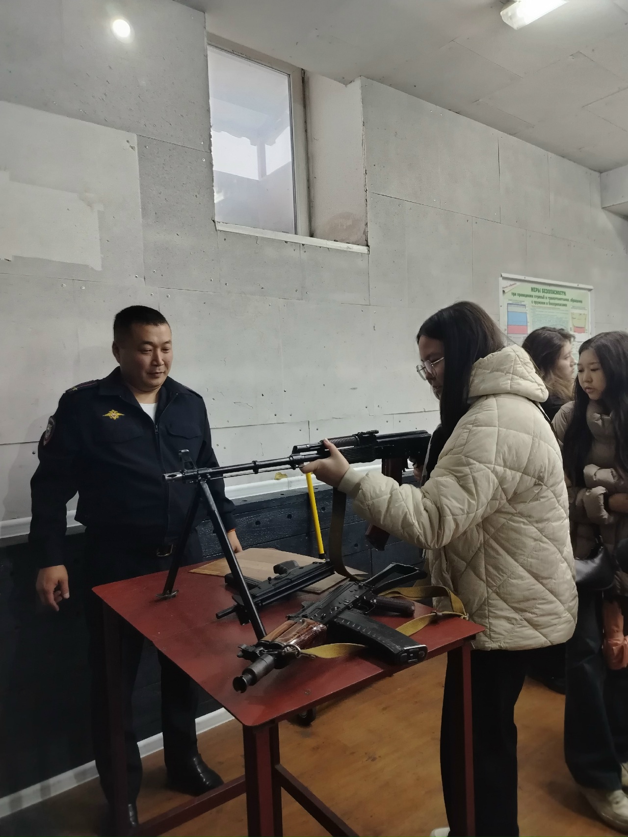 14 ноября 2025 года студенты 1-го курса специальности «Юриспруденция» (кл.рук. Басанова Д.В., Будыльская Н.В.) посетили День открытых дверей в МВД по РК. Сотрудники отдела профессиональной подготовки Управления по работе с личным составом МВД по РК рассказали будущим юристам о работе полицейского ведомства, функциях различных подразделений и их роли в обеспечении правопорядка. В рамках мероприятия заместитель начальника отдела профессиональной подготовки подполковник полиции Очир Наркаев поделился с ребятами интересными и запоминающимися случаями из своей практики. Старший инспектор по особым поручениям отдела профессиональной подготовки капитан полиции Вячеслав Скосарев показал в тире стандартный набор защиты сотрудника ОВД, работу оружия, его внутреннее устройство, продемонстрировал спецсредства, состоящие на вооружении полиции, экипировку стражей правопорядка. Студенты имели возможность примерить защитное обмундирование, что добавило практический аспект в их понимание службы.