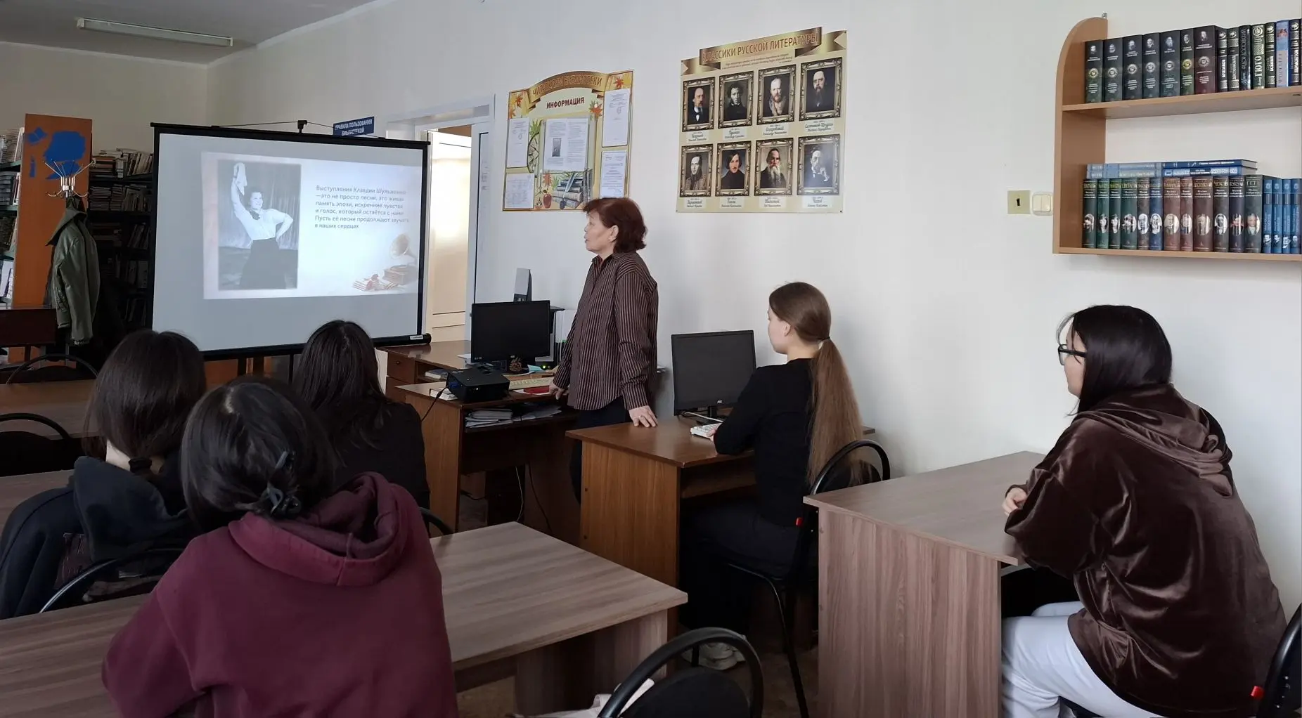 01 апреля 2026 года в библиотеке КФ РГУ СоцТех состоялся библиотечный урок «Синий платочек», посвященный великой русской певице К.И. Шульженко.