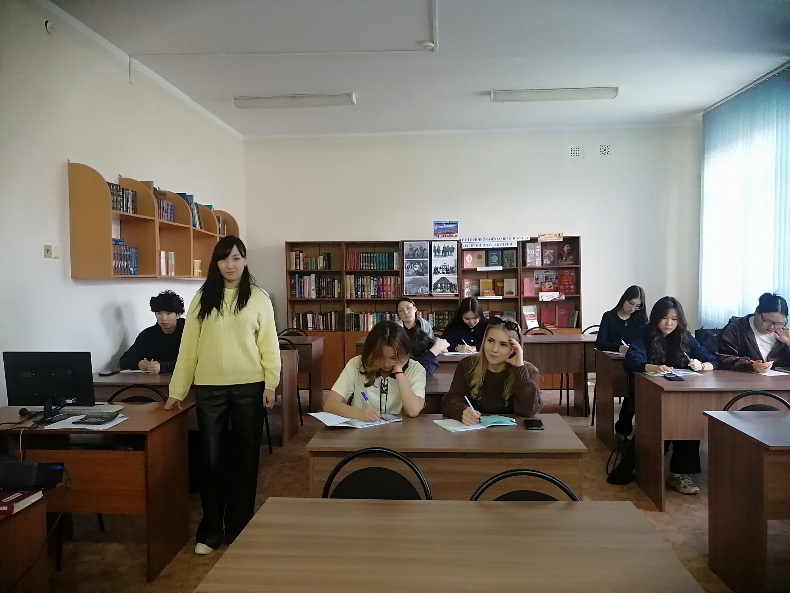 09 апреля 2026 года преподавателем КФ РГУ СоцТех Нарановой С.Б. совместно с заведующим библиотекой Бевиновой И.В. в группе Б-1 специальности 38.02.01 Экономика и бухгалтерский учет (по отраслям) проведен совместный урок по русскому языку «Предложения с прямой и косвенной речью». Во время занятия студенты изучили основные виды передачи чужой речи, а также способы её оформления. Инга Владимировна подготовила презентацию по теме урока и провела интерактивную игру.