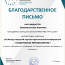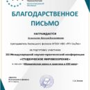 3 место – Кичикова В., секция «Теоретические и практические аспекты